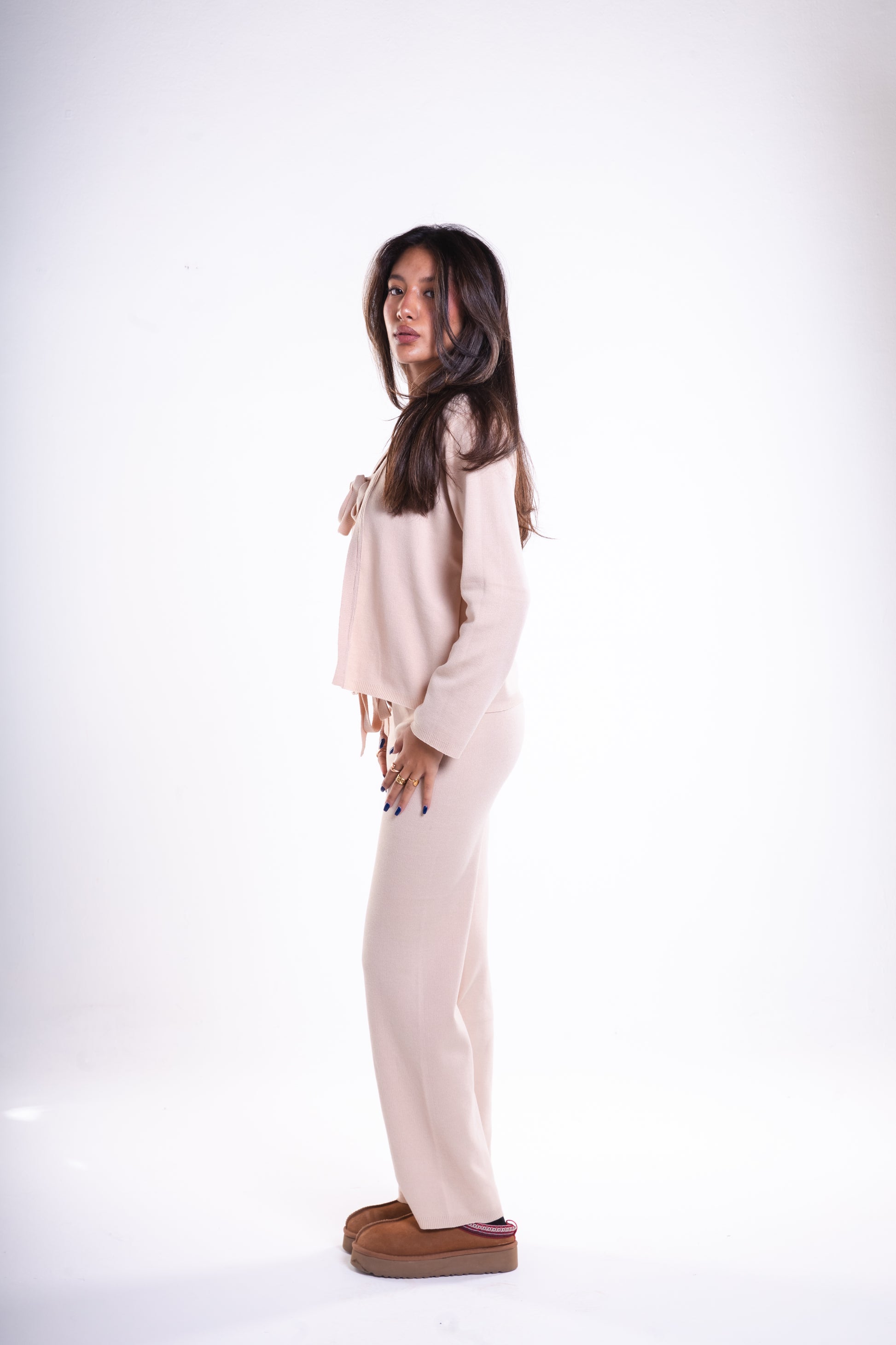 Made from the same ultra-soft knit as our Bow Cardigan, these pants offer a relaxed, flattering fit with a smooth drape that moves with you. Minimal, timeless, and incredibly comfortable — pair them with the cardigan for the full cozy set or style them your way for everyday ease.