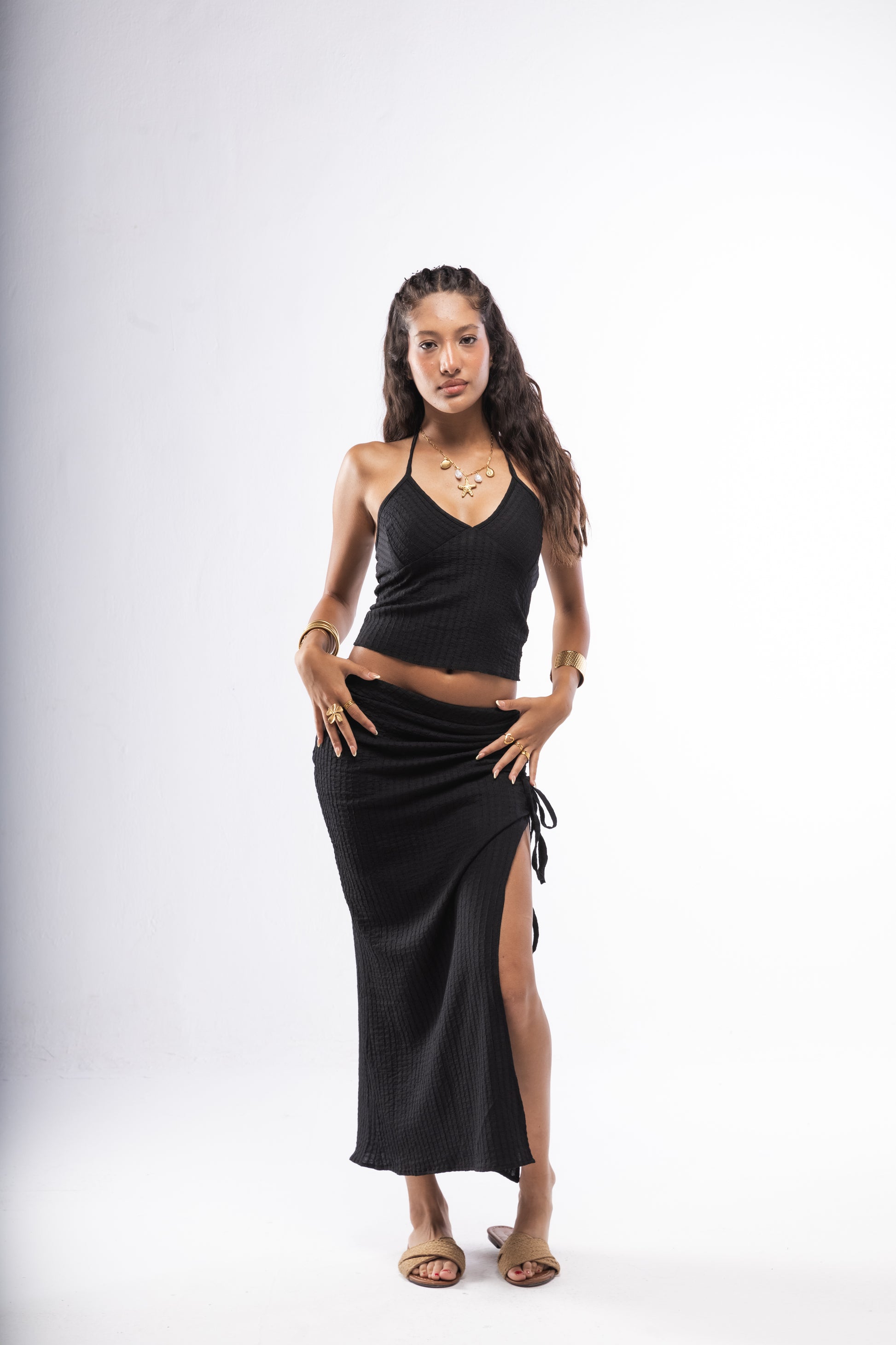 A summer must-have. The Golden Aura Top is your go-to fitted piece with a trendy twist. Made from breathable, crinkled fabric that hugs just right. It's soft, flattering, and made to style up or down.