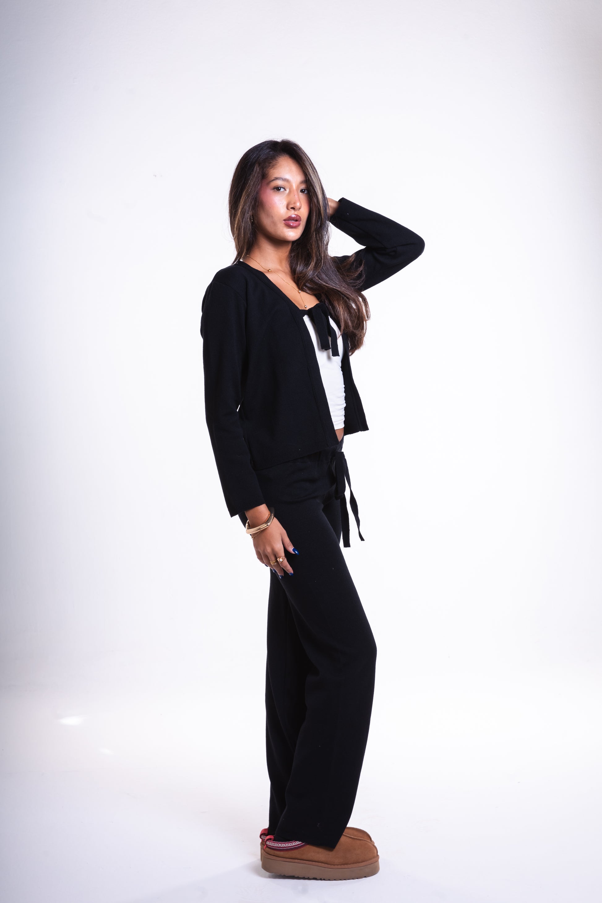 Made from the same ultra-soft knit as our Bow Cardigan, these pants offer a relaxed, flattering fit with a smooth drape that moves with you. Minimal, timeless, and incredibly comfortable — pair them with the cardigan for the full cozy set or style them your way for everyday ease.