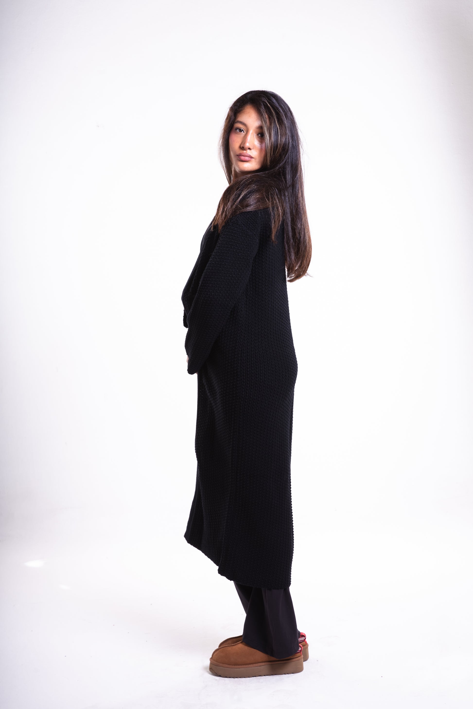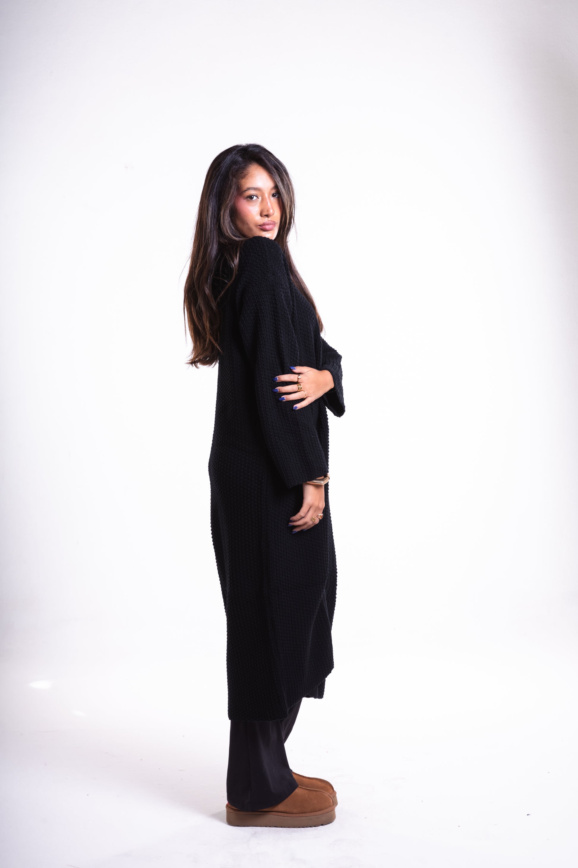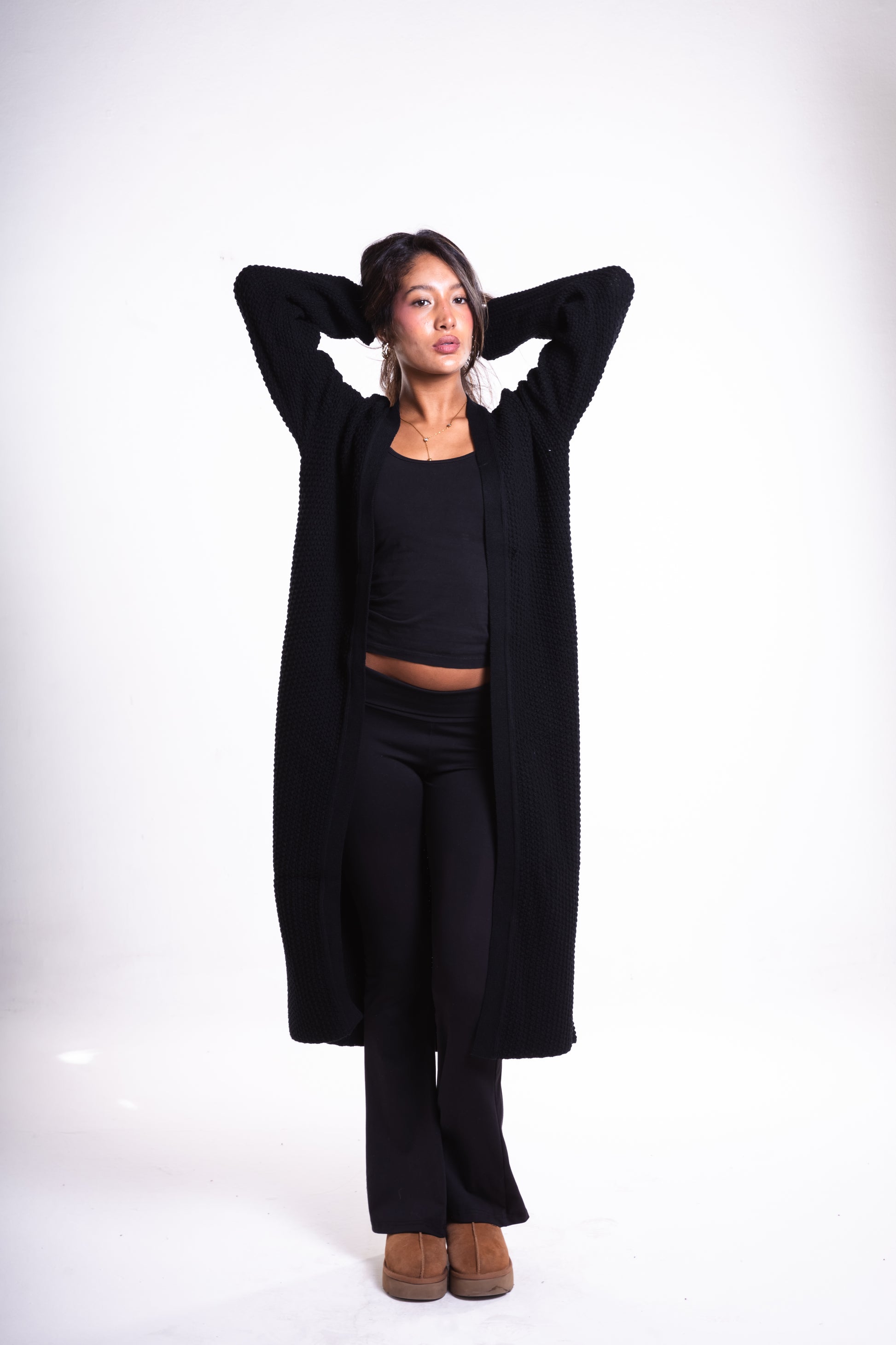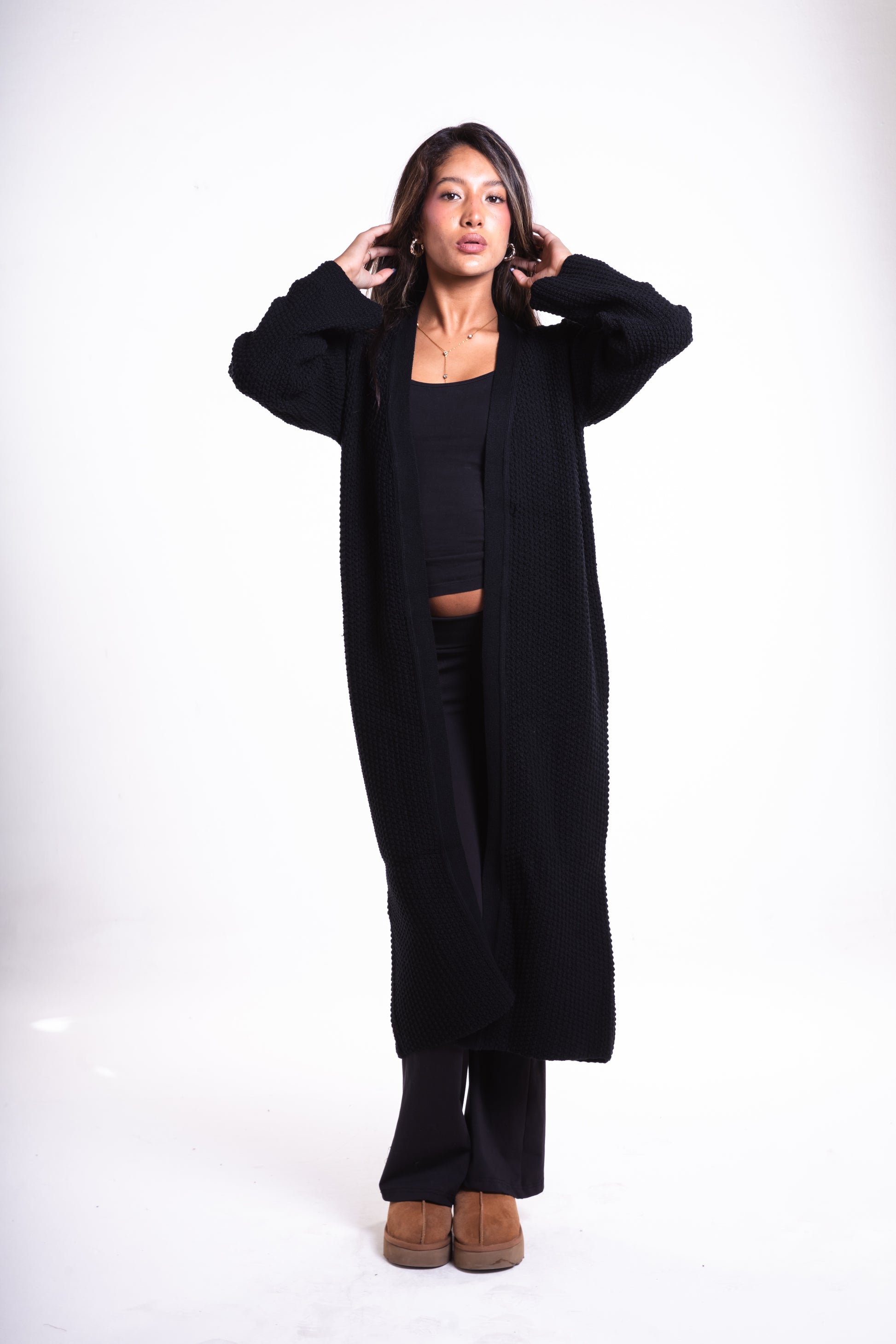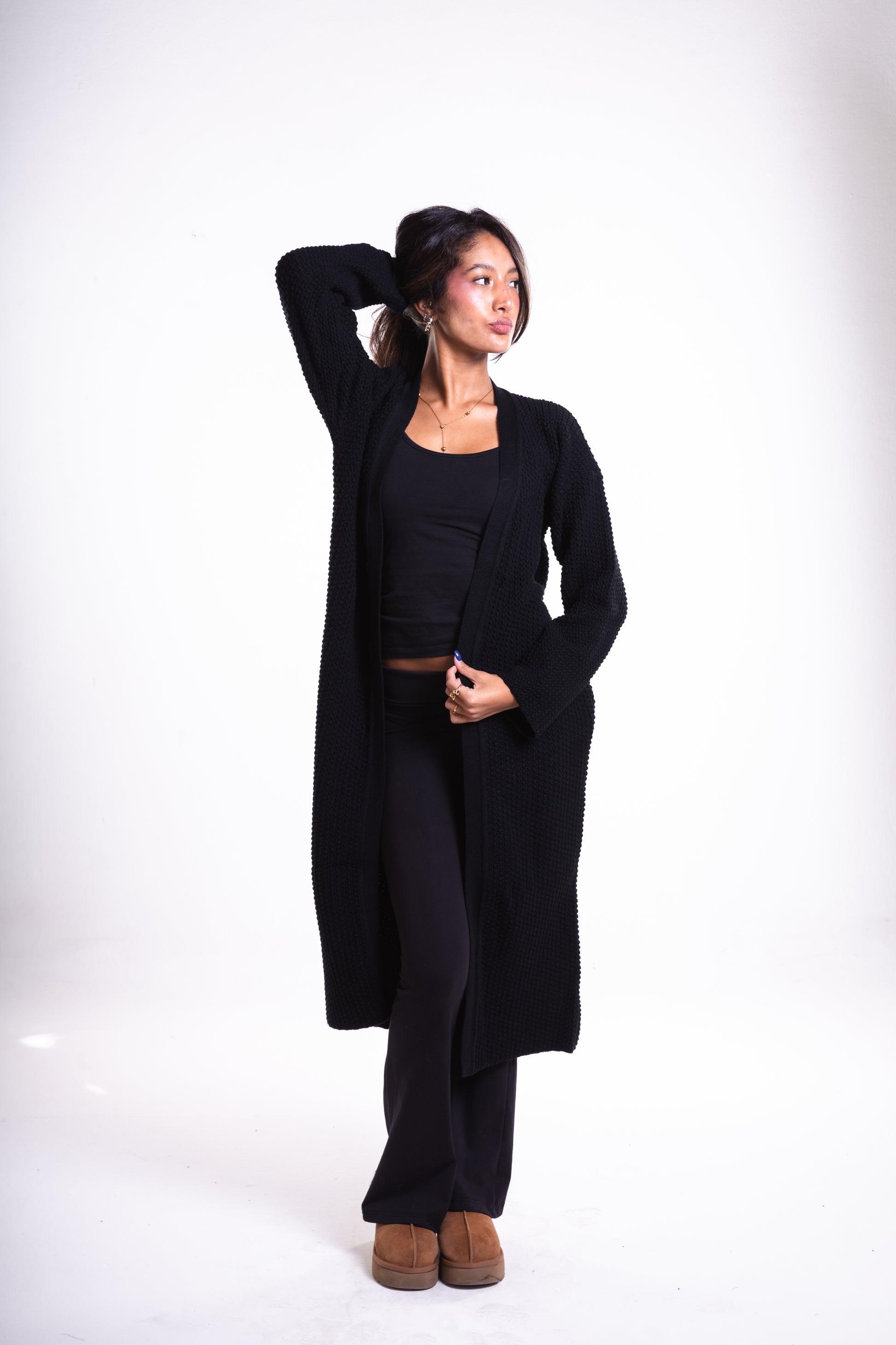 Designed in the same cloud-soft knit, this long cardigan offers extra warmth with a gentle, puffy texture that feels as comforting as it looks. One size fits all, with a relaxed drape that flatters effortlessly. Ideal for layering on cold days and creating easy, polished winter outfits.