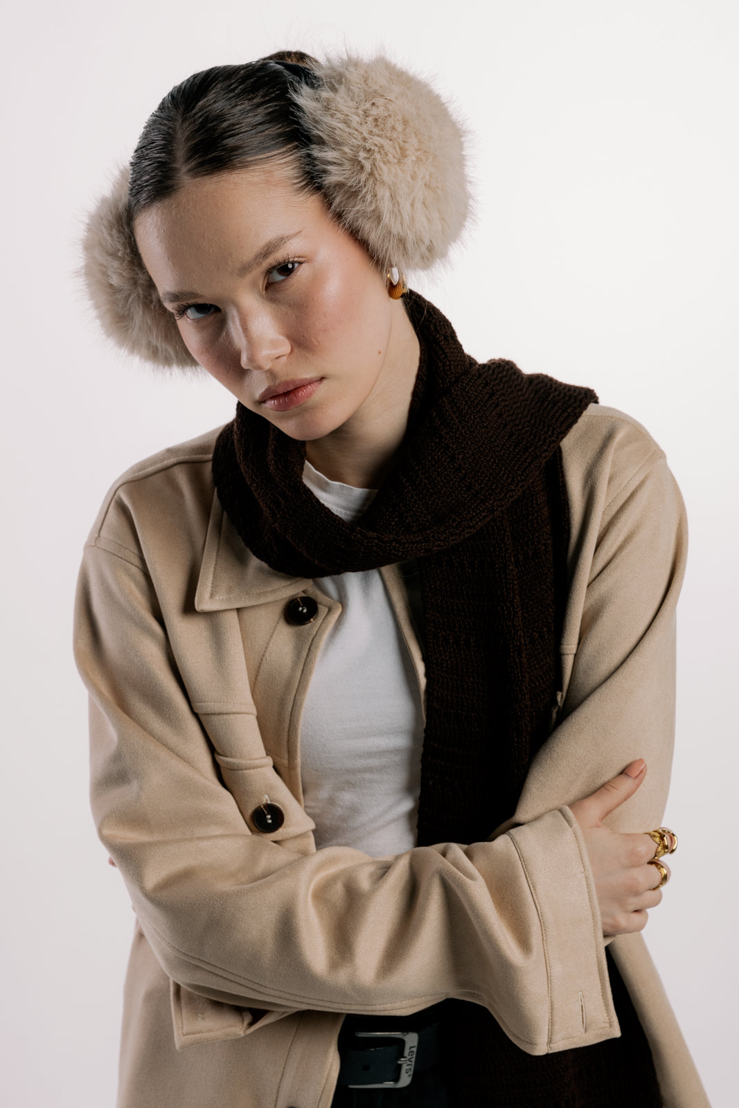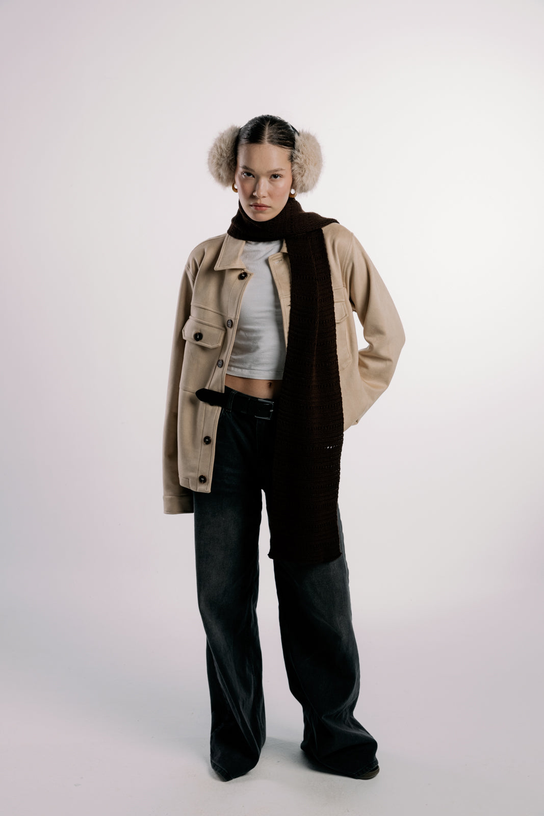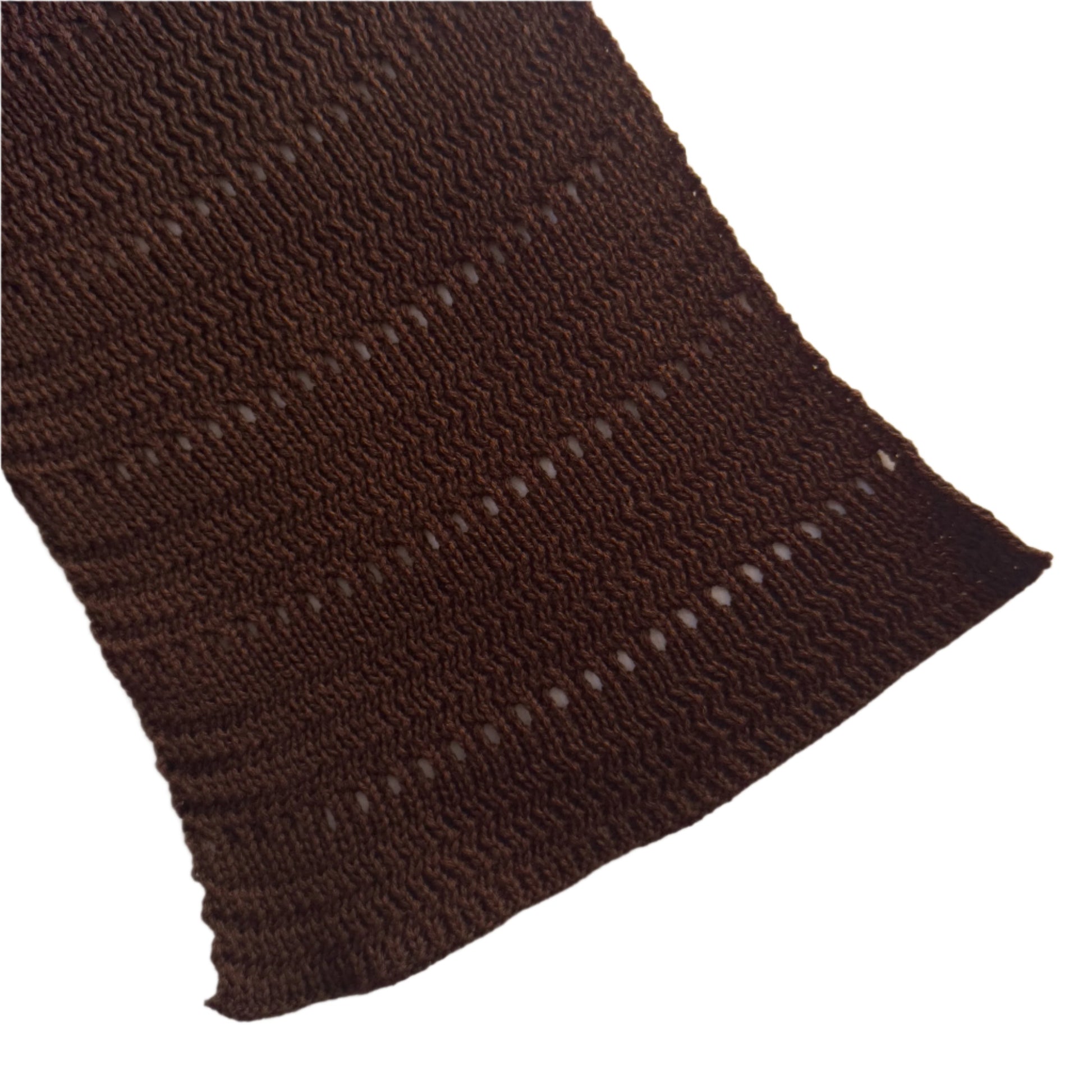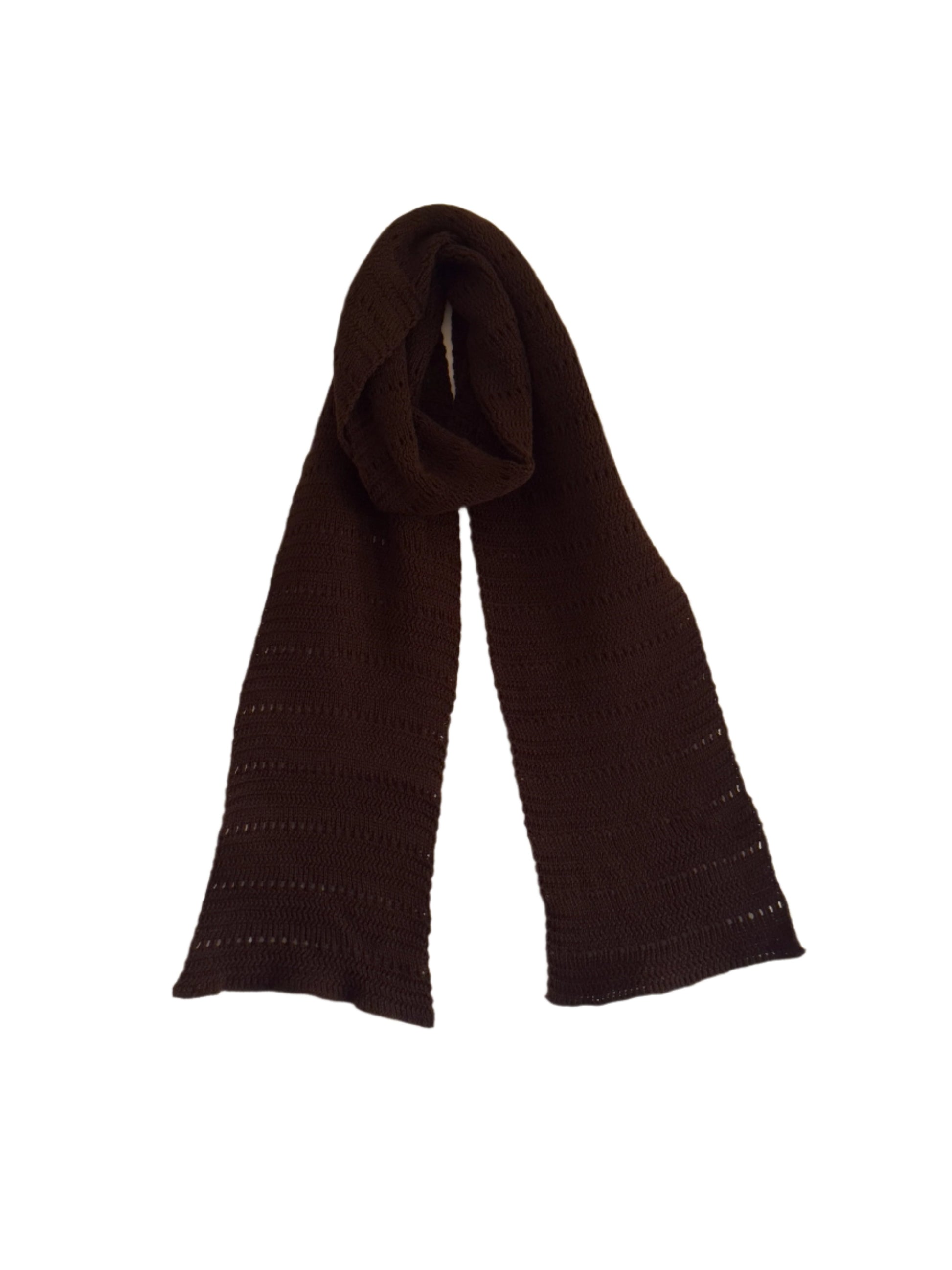 The Brown Hollowed Scarf features a unique holes design, adding a modern touch to any outfit. With a width of 25cm and length of 180cm, this versatile scarf offers both style and functionality.