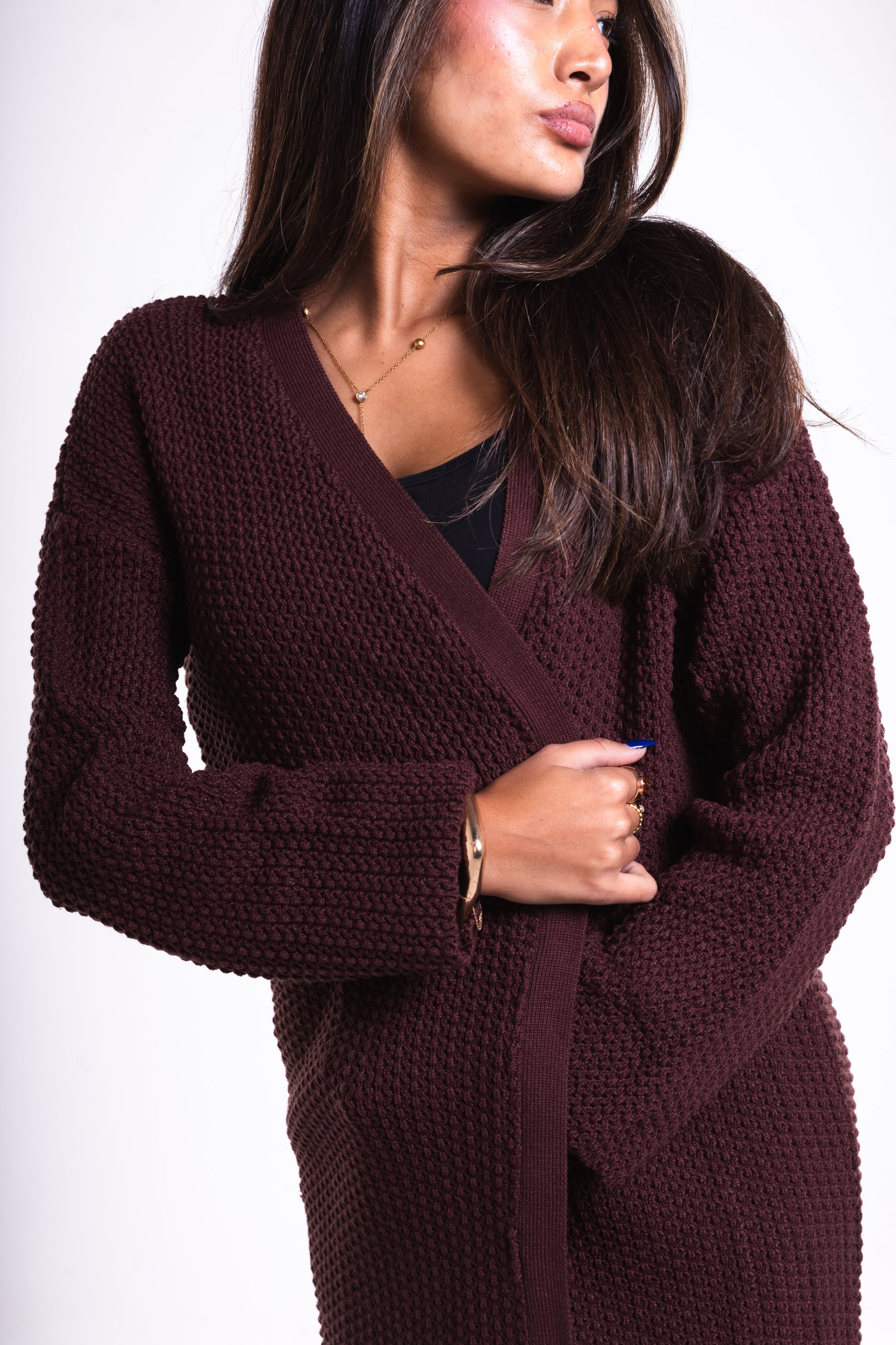Designed in the same cloud-soft knit, this long cardigan offers extra warmth with a gentle, puffy texture that feels as comforting as it looks. One size fits all, with a relaxed drape that flatters effortlessly. Ideal for layering on cold days and creating easy, polished winter outfits.