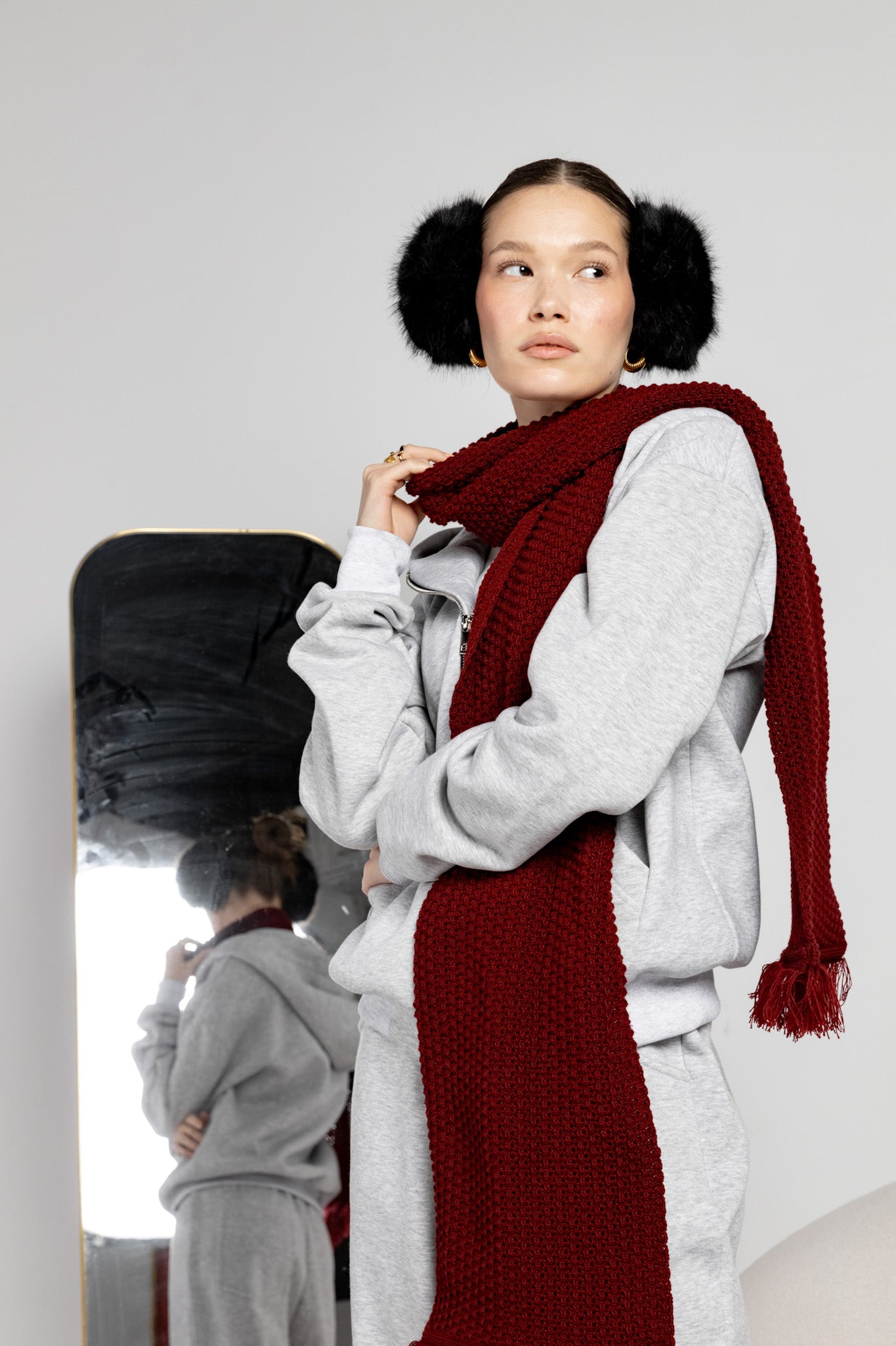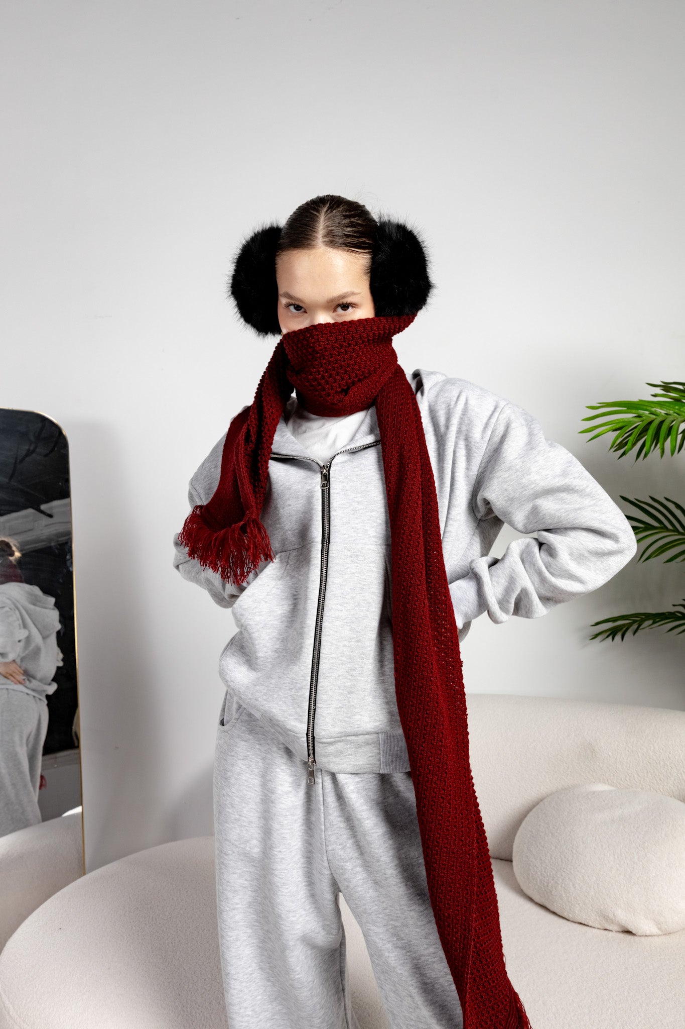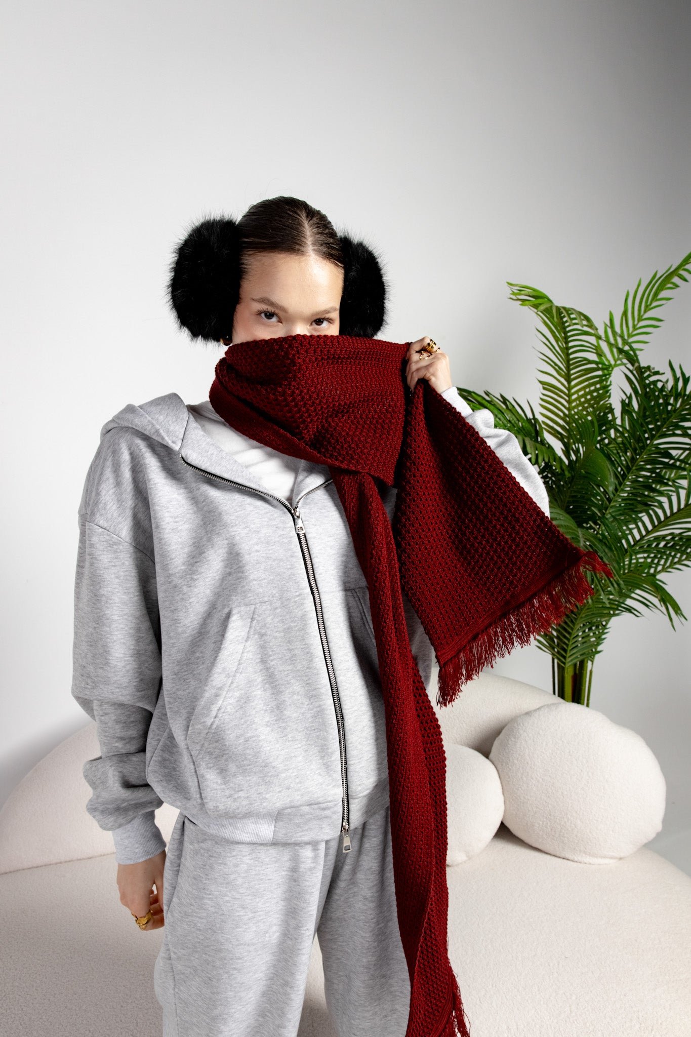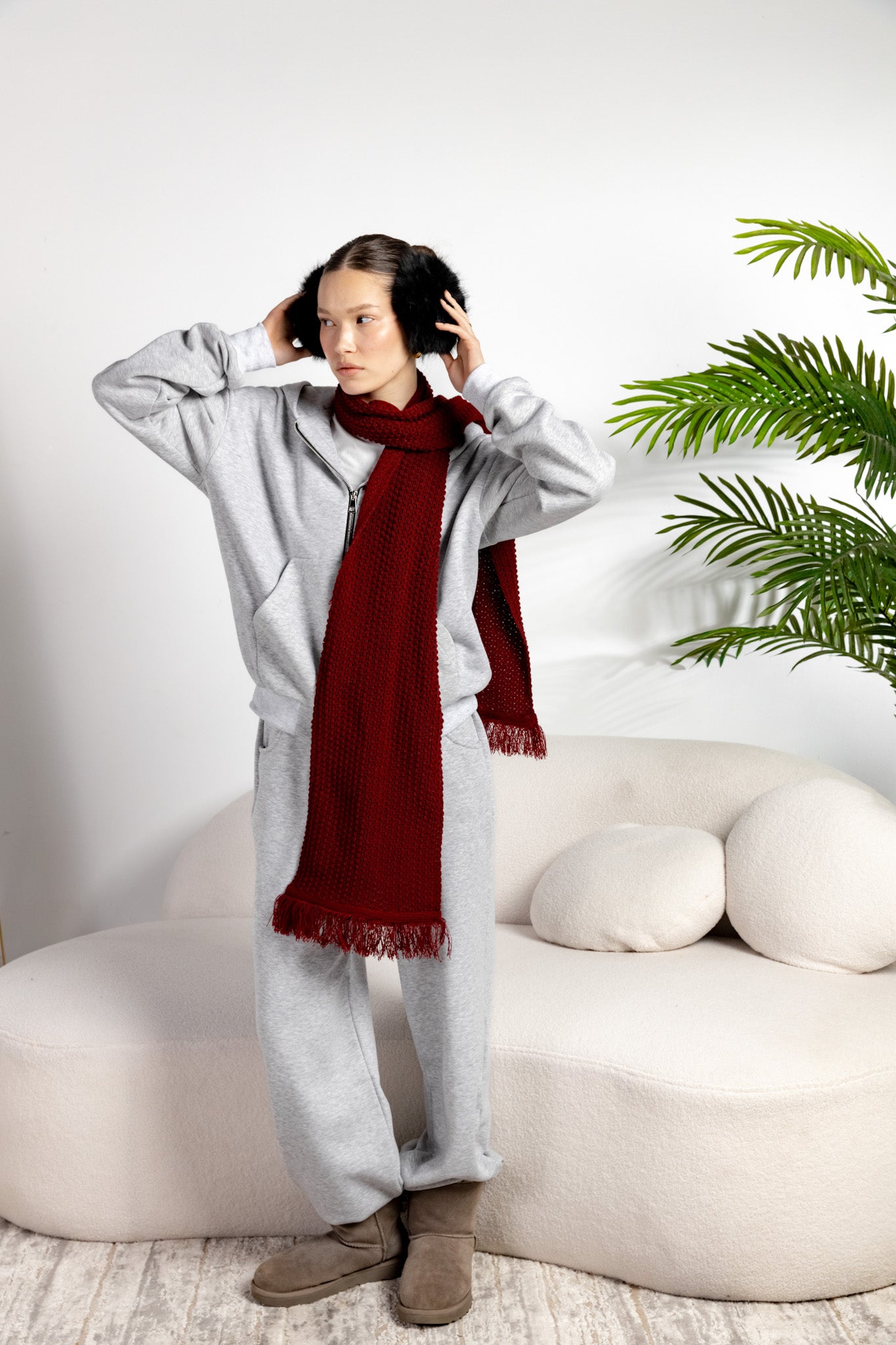 Expertly crafted from soft, lightweight knit fabric, this burgundy scarf is 25cm wide and 1.80cm long. Perfect for both casual and formal occasions, it provides a sleek and stylish way to keep warm. With its versatile design, it's a must-have accessory for any cold-weather wardrobe.