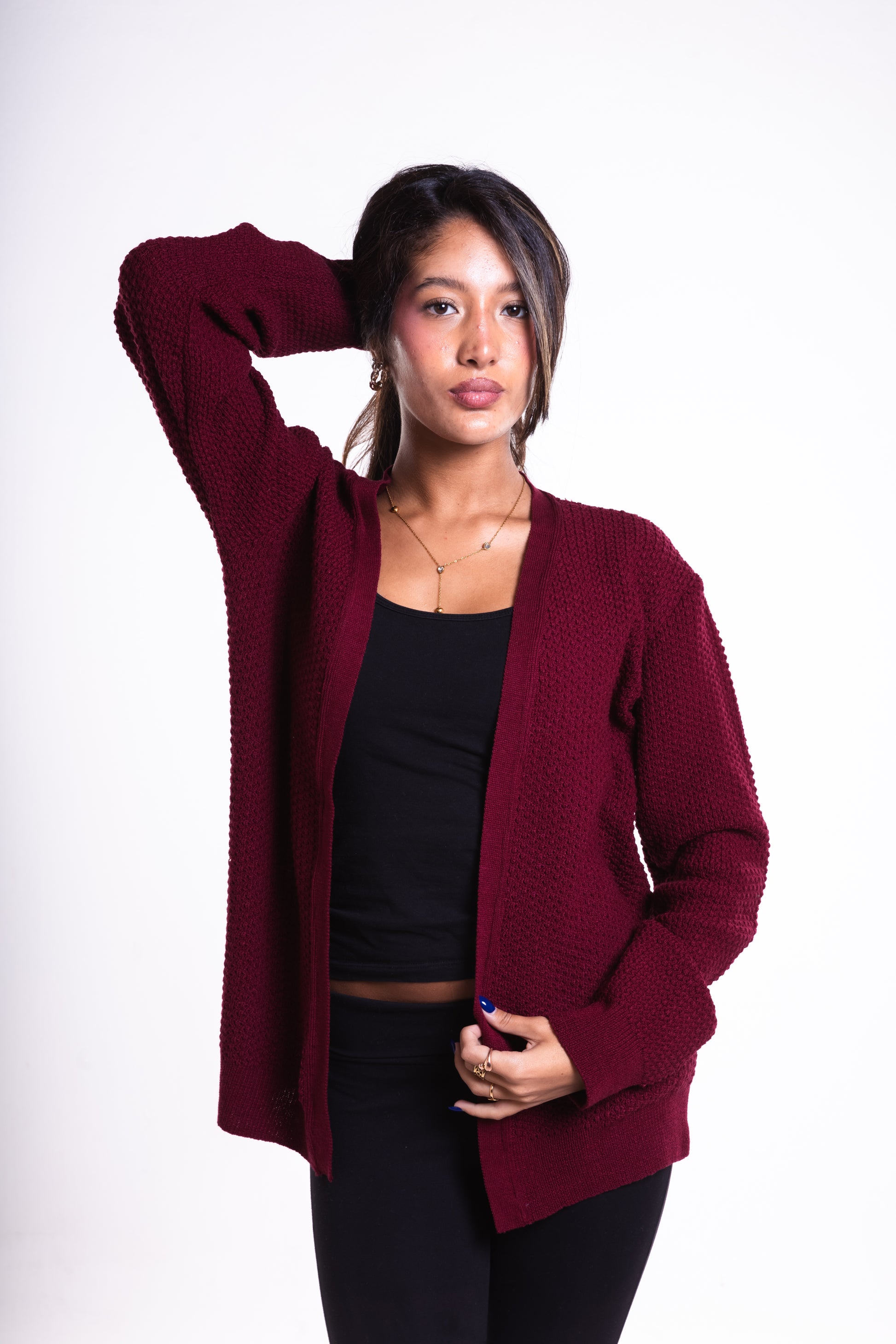 This one-size cardigan is crafted from our ultra-soft knit, featuring a slightly puffy texture that adds warmth without the weight. Its short, relaxed silhouette makes it perfect for everyday wear. Throw it over any outfit for an instant blend of comfort and chic simplicity.
