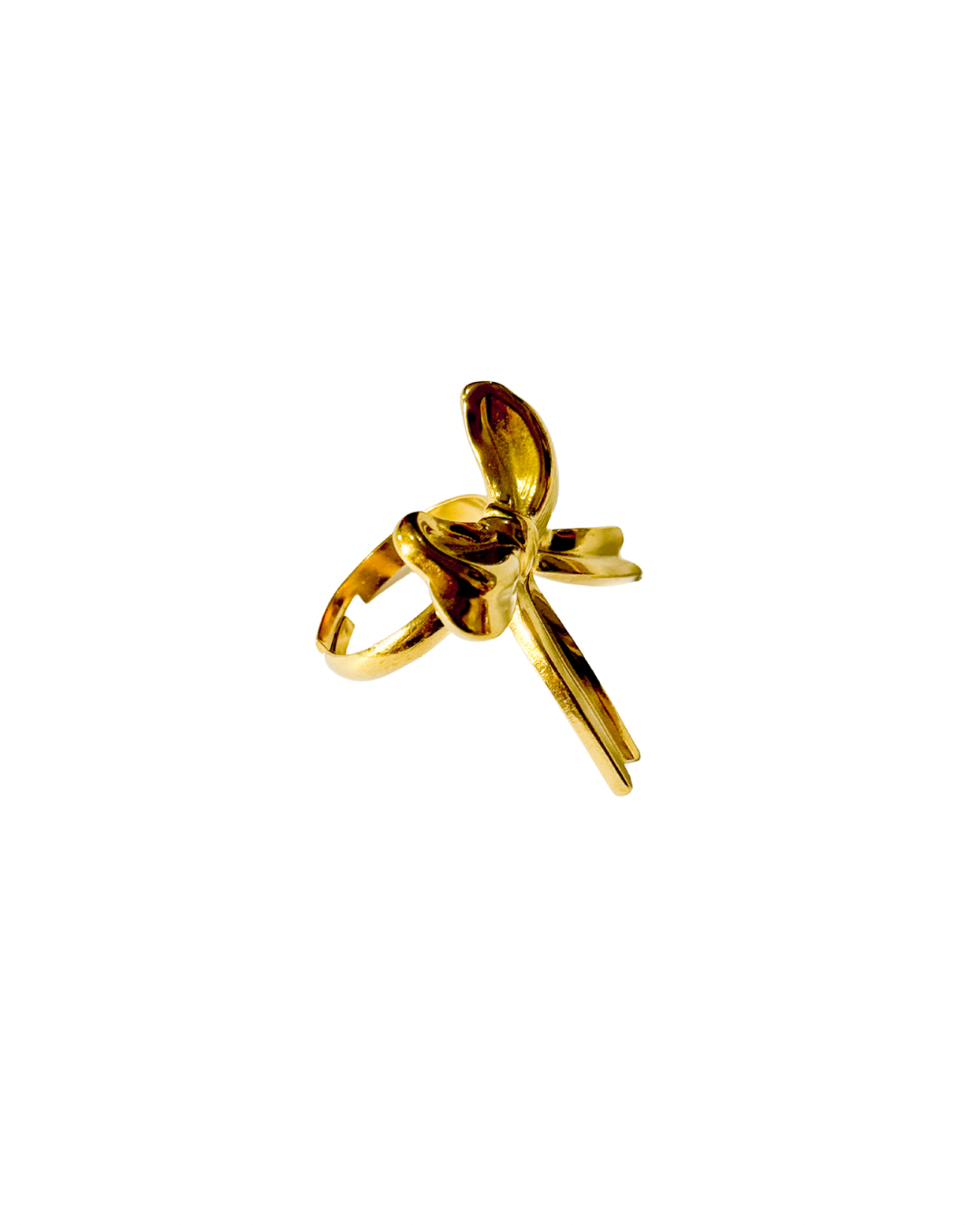 This Chunky Bow Ring is a must-have accessory for any fashionable individual. Made of durable stainless steel, it features an elegant bow design and is adjustable to fit any finger.