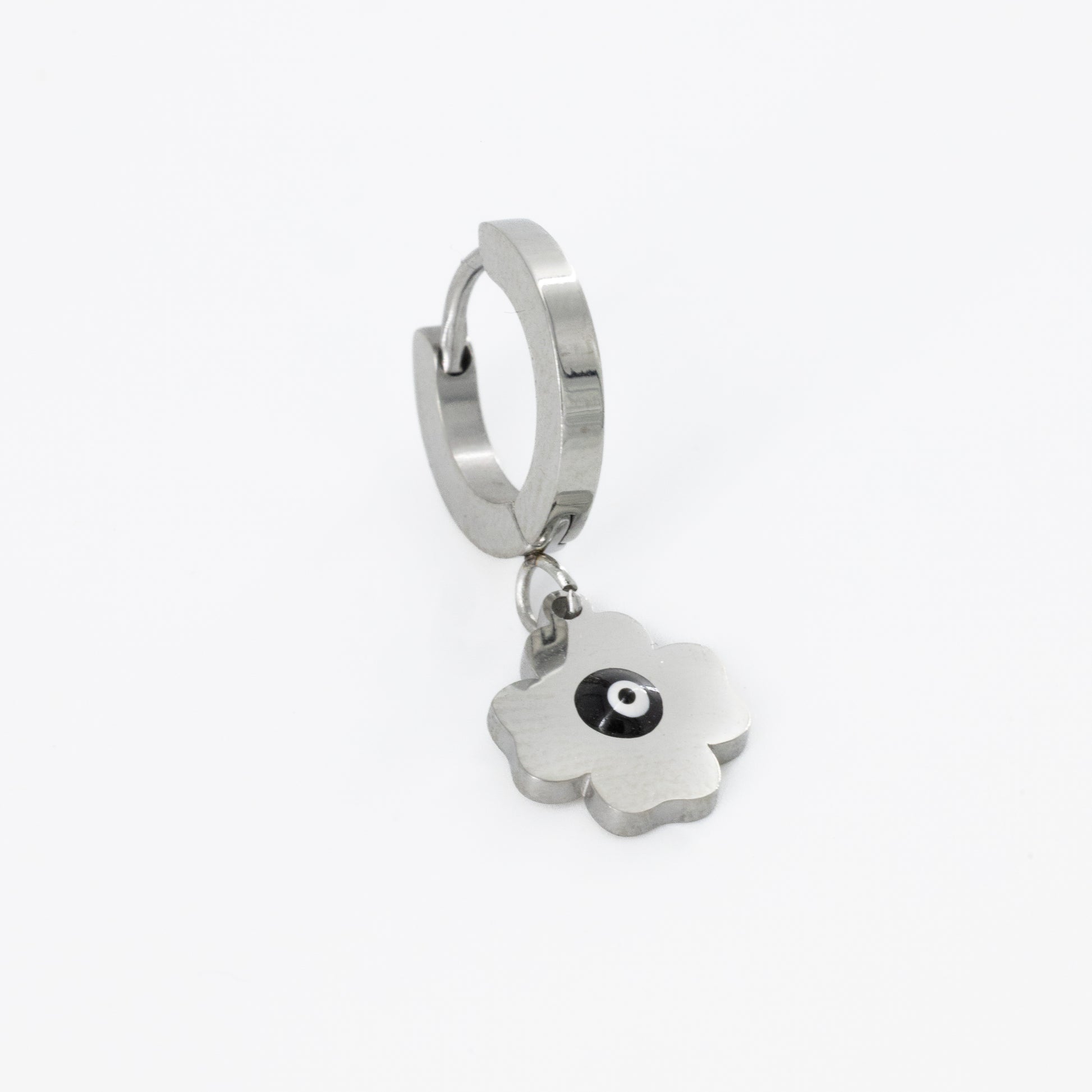 Watch out for compliments with our playful Flower Evil Eye Earring! Made with stainless steel, this single earring is perfect for adding a touch of uniqueness to any outfit. Sold individually, not in a pair. Don't miss out on this edgy and quirky accessory!