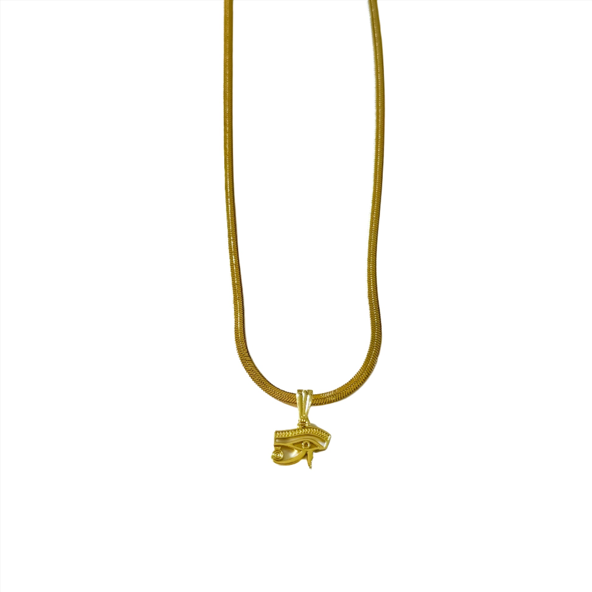 Elevate your style with our Horus Eye Necklace. Crafted with a durable stainless steel chain measuring 45cm, this necklace boasts a stunning horus eye pendant.