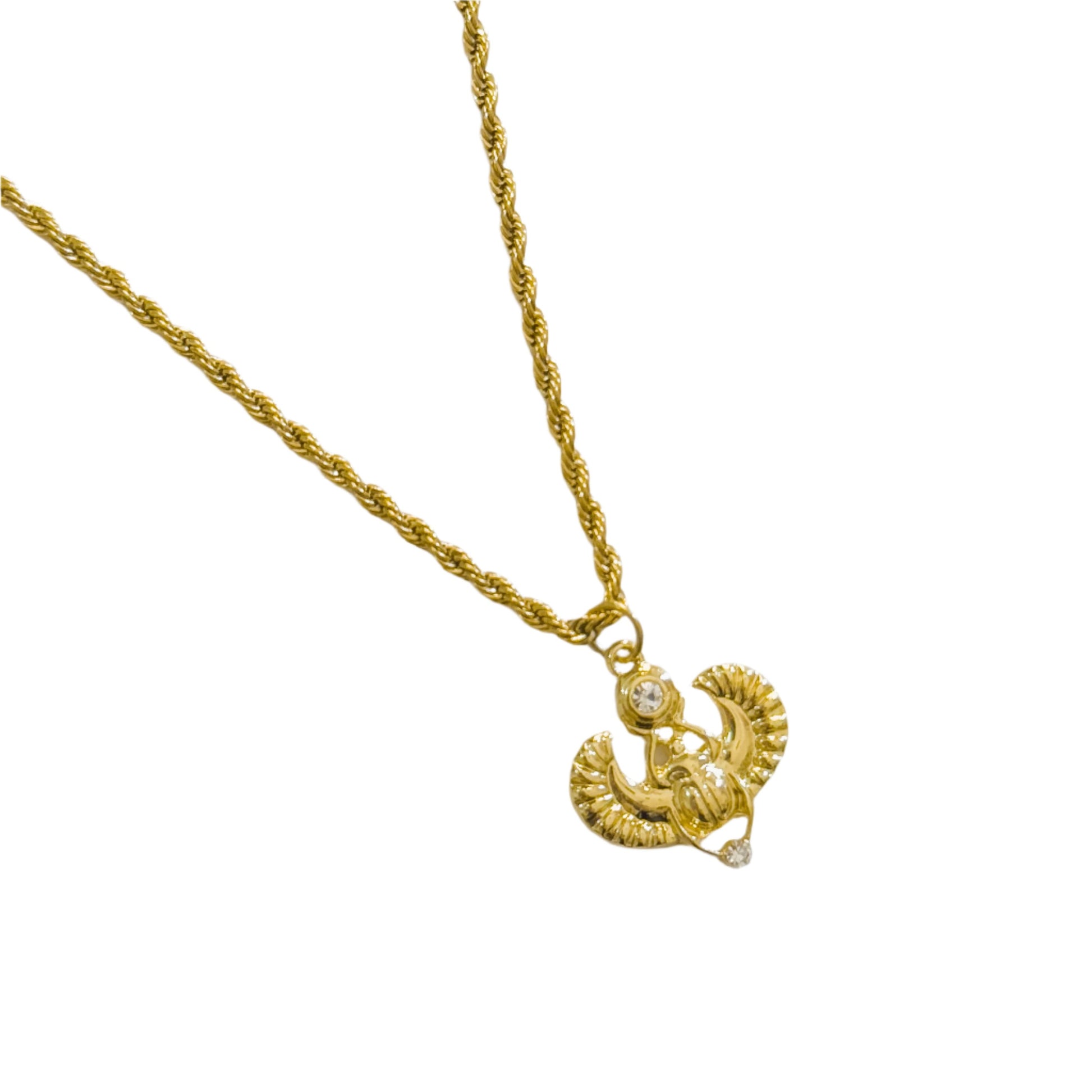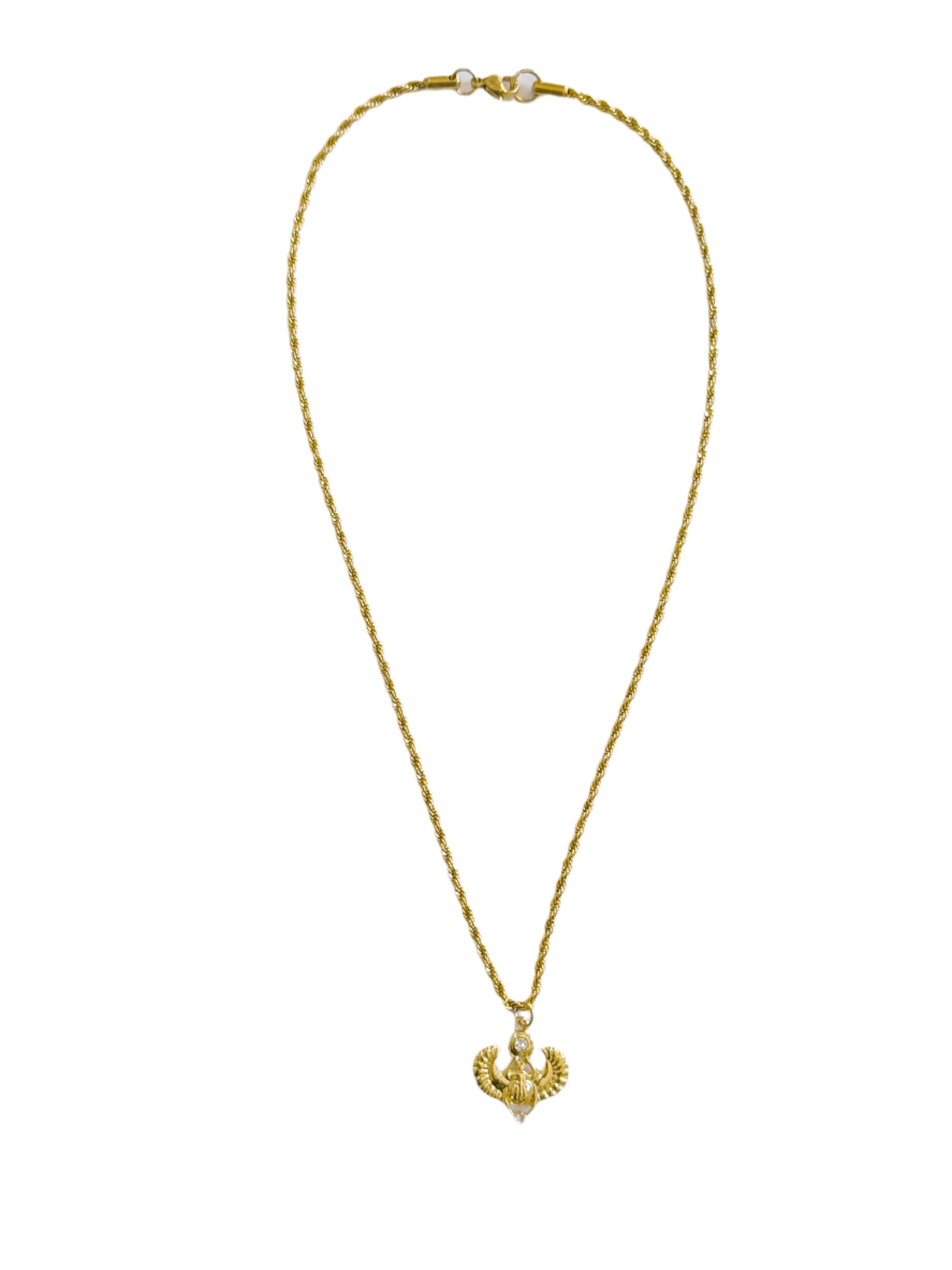 This stainless steel necklace features a stunning isis pendant. With a length of 45cm and a 5cm extension, it is the perfect accessory to add a touch of ancient Egyptian lore to any outfit.