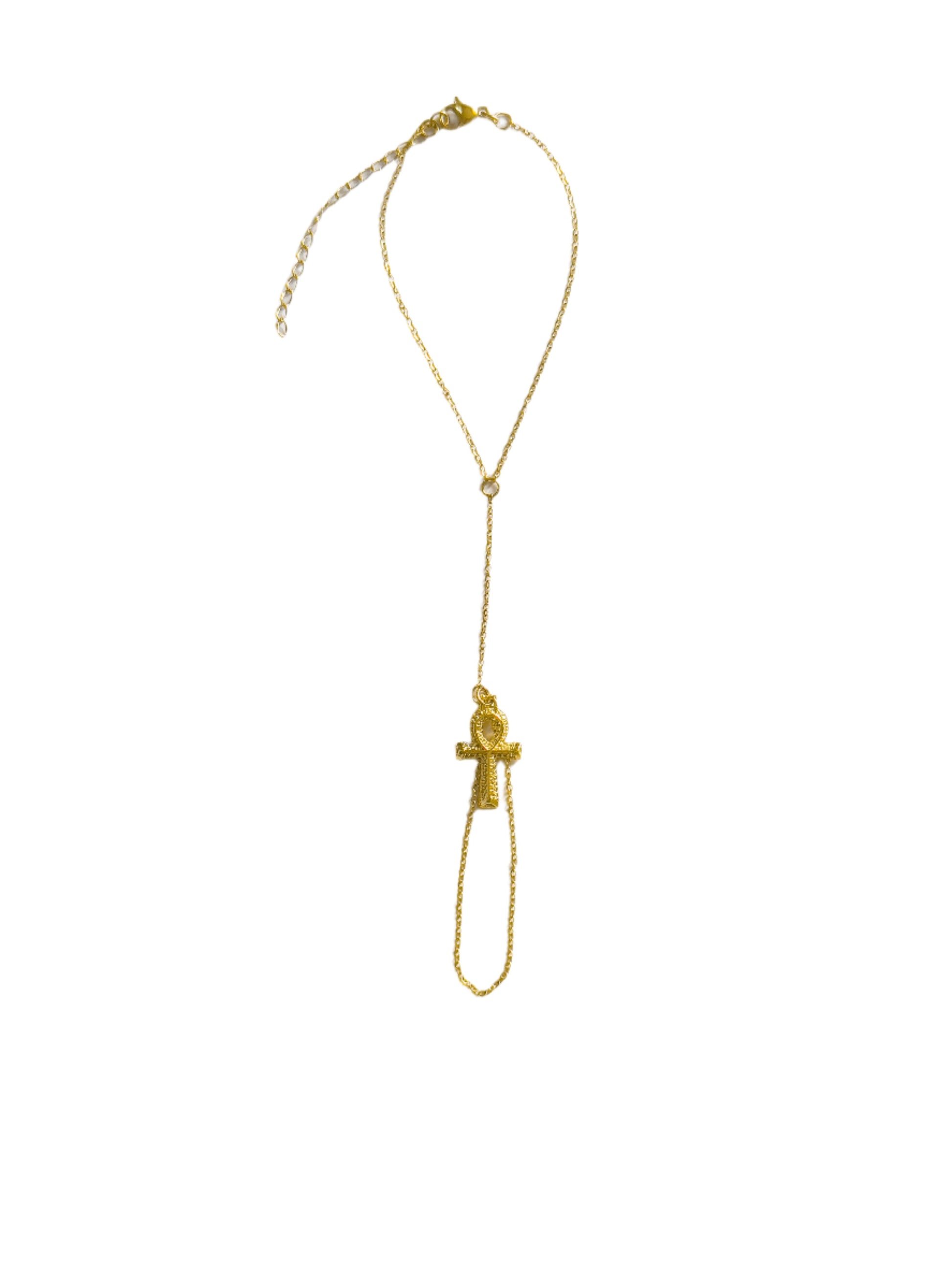 This stylish handchain features a stainless steel bracelet ring with an adjustable fit. The key of life charm adds a touch of elegance. Expertly crafted and perfect for any occasion.