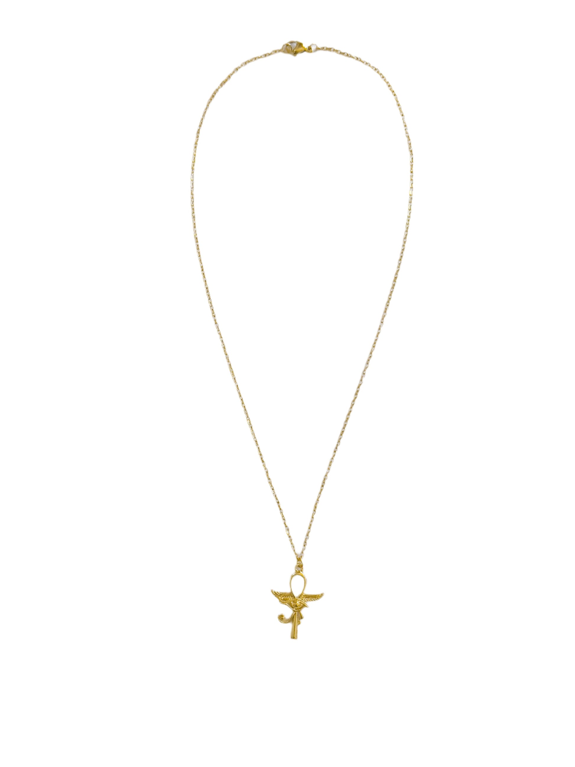 This stainless steel necklace features a stunning key of life pendant. With a length of 45cm and a 5cm extension, it is the perfect accessory to add a touch of ancient Egyptian lore to any outfit.