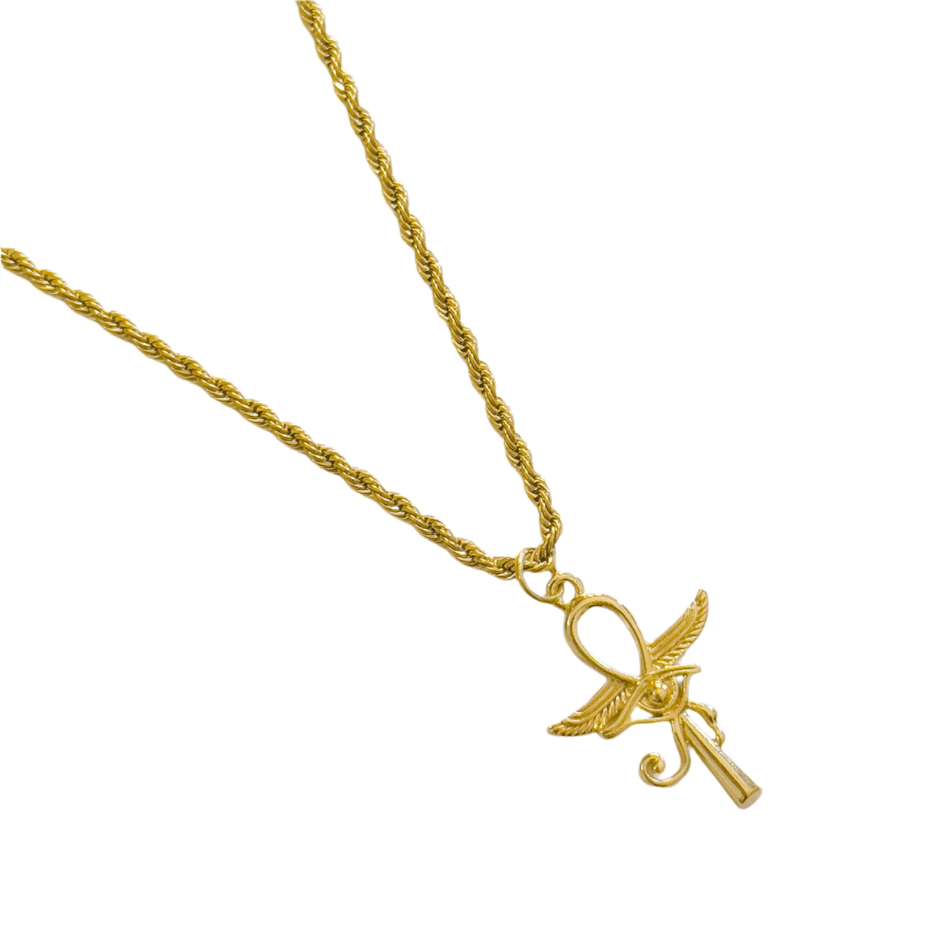 This stainless steel necklace features a stunning key of life pendant. With a length of 45cm and a 5cm extension, it is the perfect accessory to add a touch of ancient Egyptian lore to any outfit.