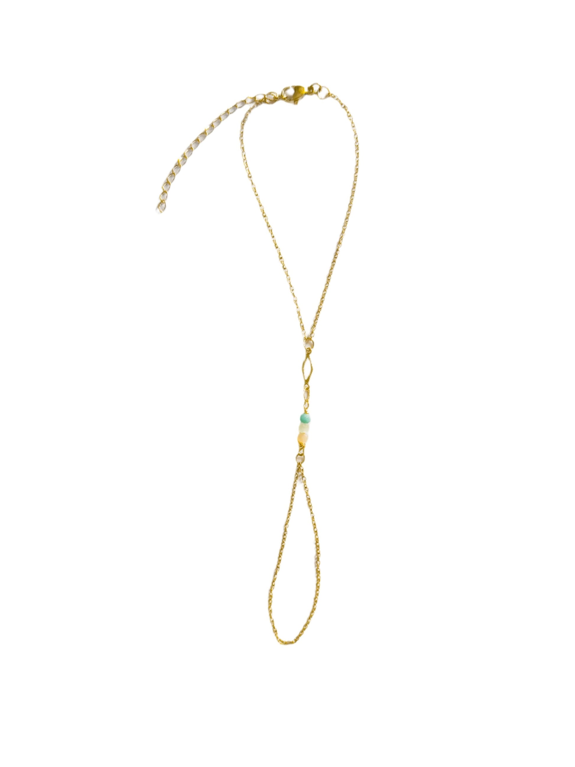 This stylish handchain features a stainless steel bracelet ring with an adjustable fit. The colorful beads add a touch of elegance. Expertly crafted and perfect for any occasion.