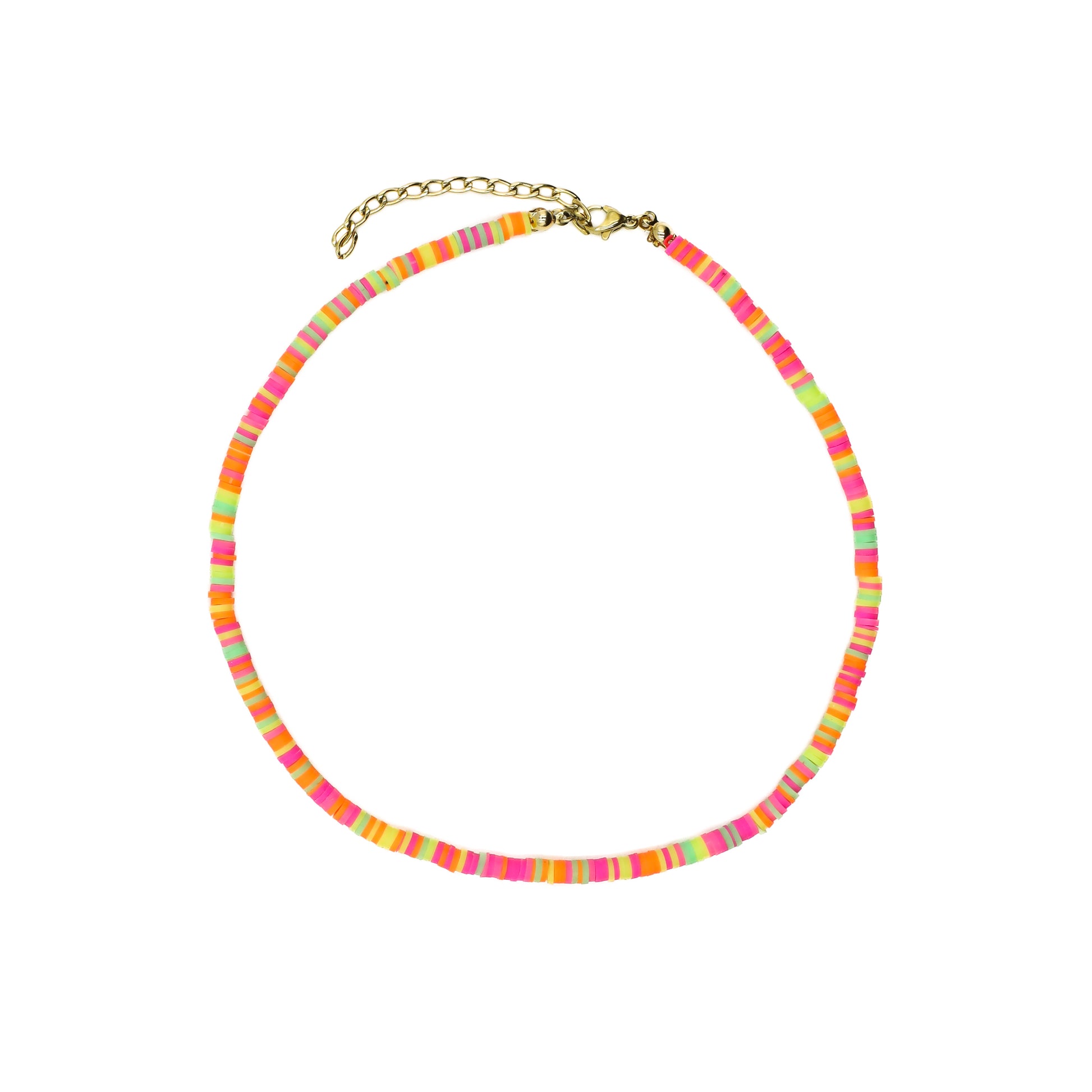Add a pop of color to your outfit with our Multicolored Thin Clay Beaded Choker. Featuring shades of pink, yellow, and orange, this choker is sure to brighten up any look. Measuring 35cm with a 5cm extension, it can be adjusted to fit your desired length.