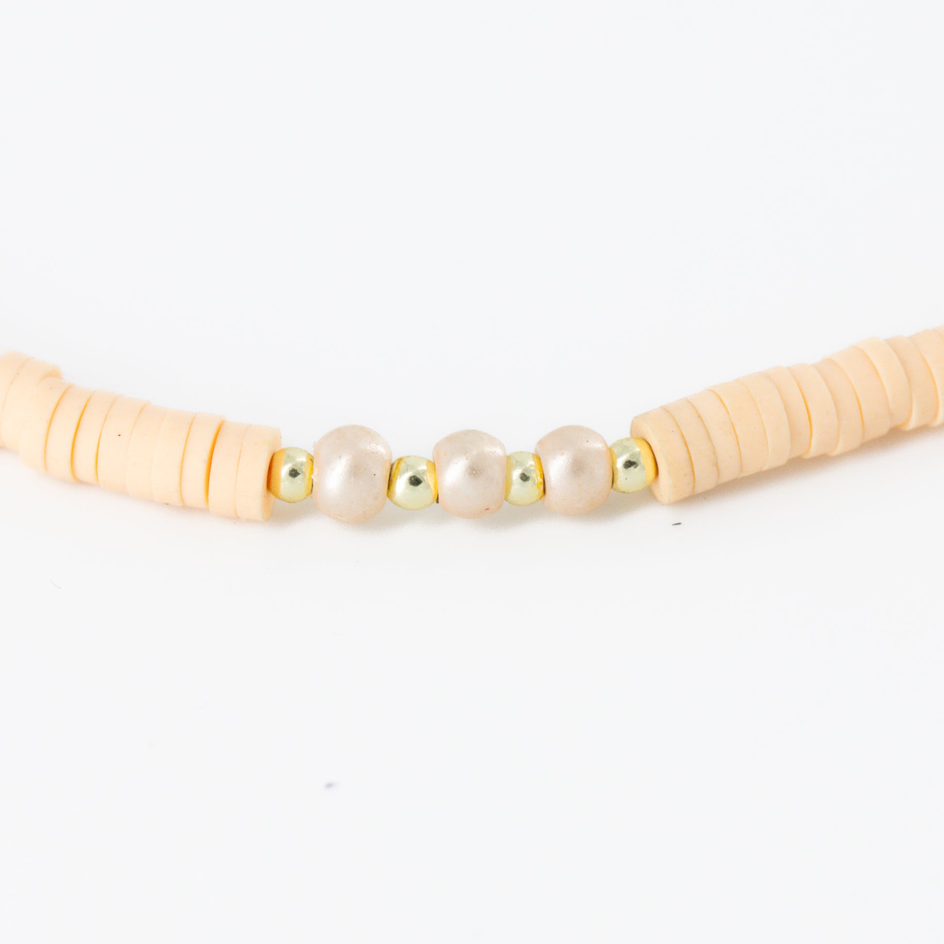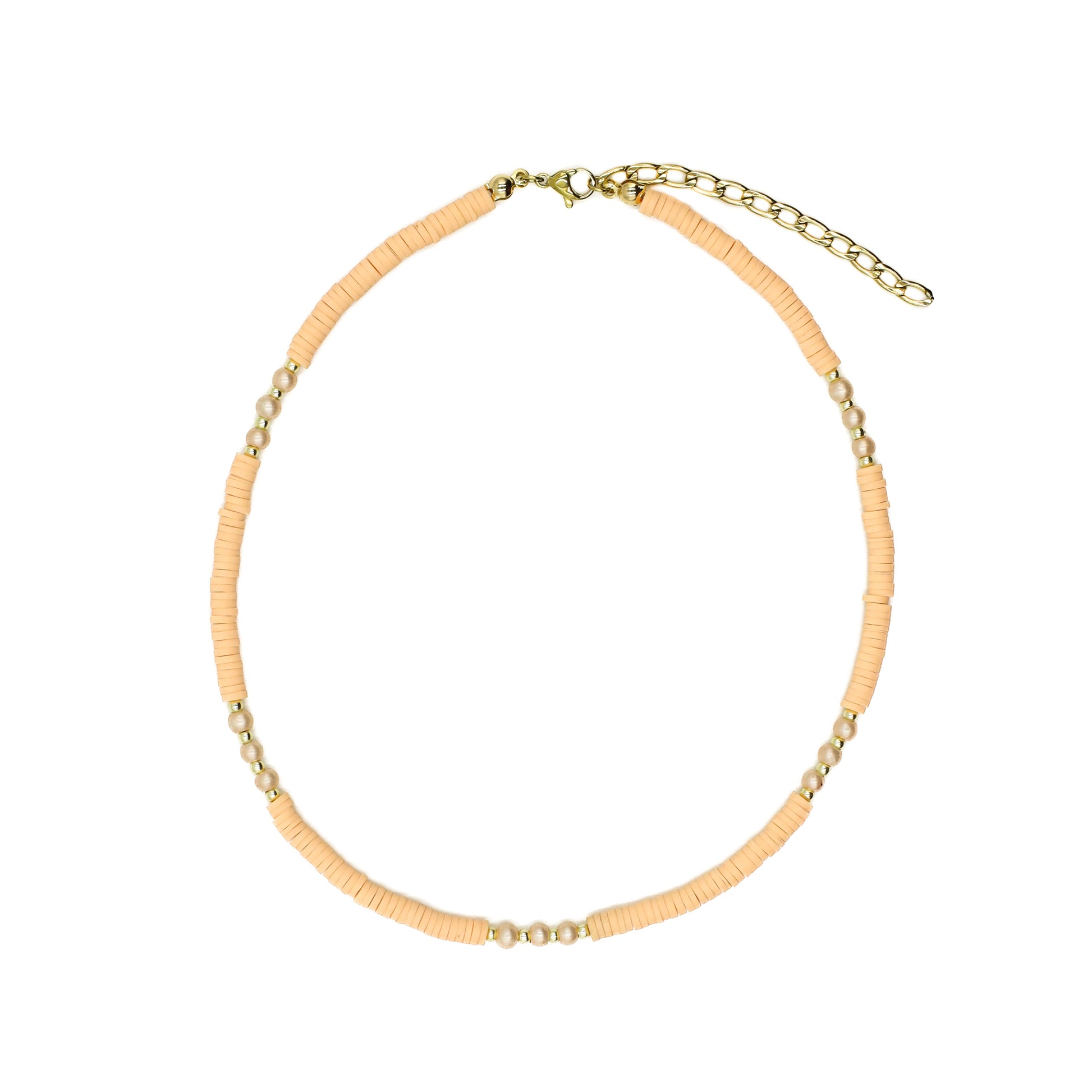 This Peachy Pink Beaded Choker is the perfect blend of elegance and charm. Made with peachy pink clay beads, this 35cm choker is beautifully accented with a 5cm extension for a comfortable fit.