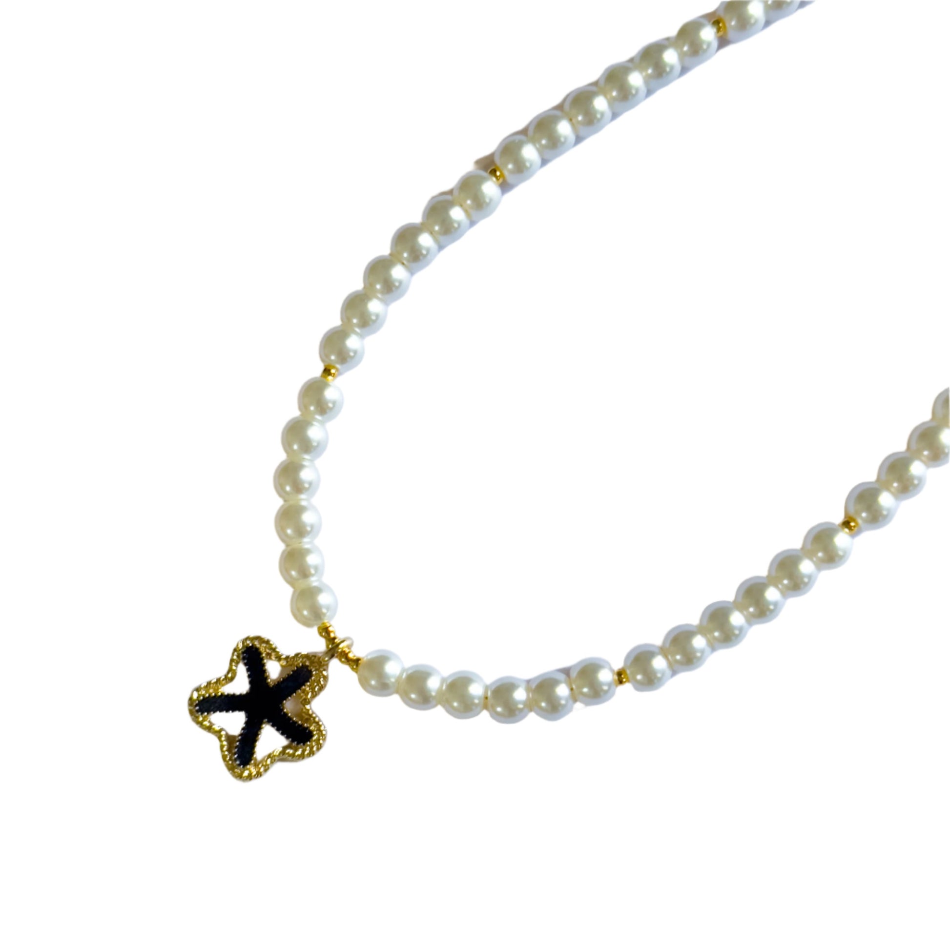 This elegant Pearls Beaded Starfish Choker is crafted with high-quality pearls and an 18k gold plated Black Starfish pendant. The choker measures 35cm with a 5cm extension.