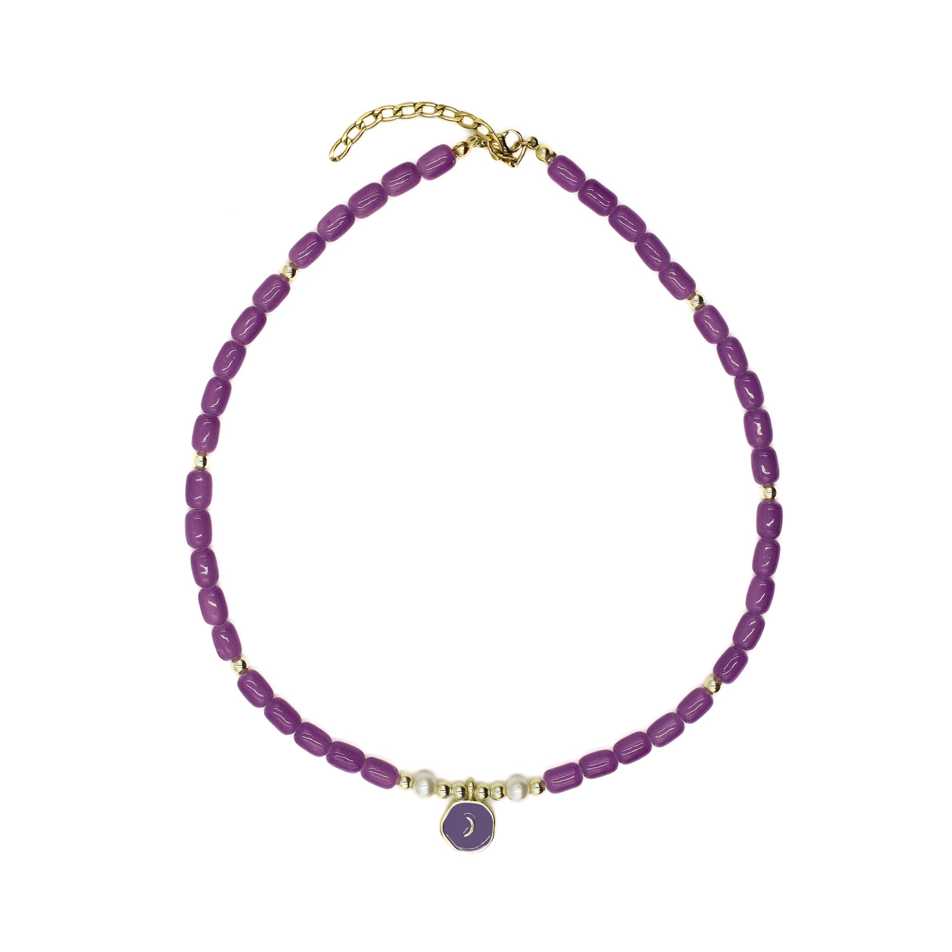 Expertly crafted with purple beads and an 18k gold plated moon pendant, this choker adds a touch of celestial elegance to any outfit. Measuring 40cm with a 5cm extension, it offers a comfortable fit for any neck size.
