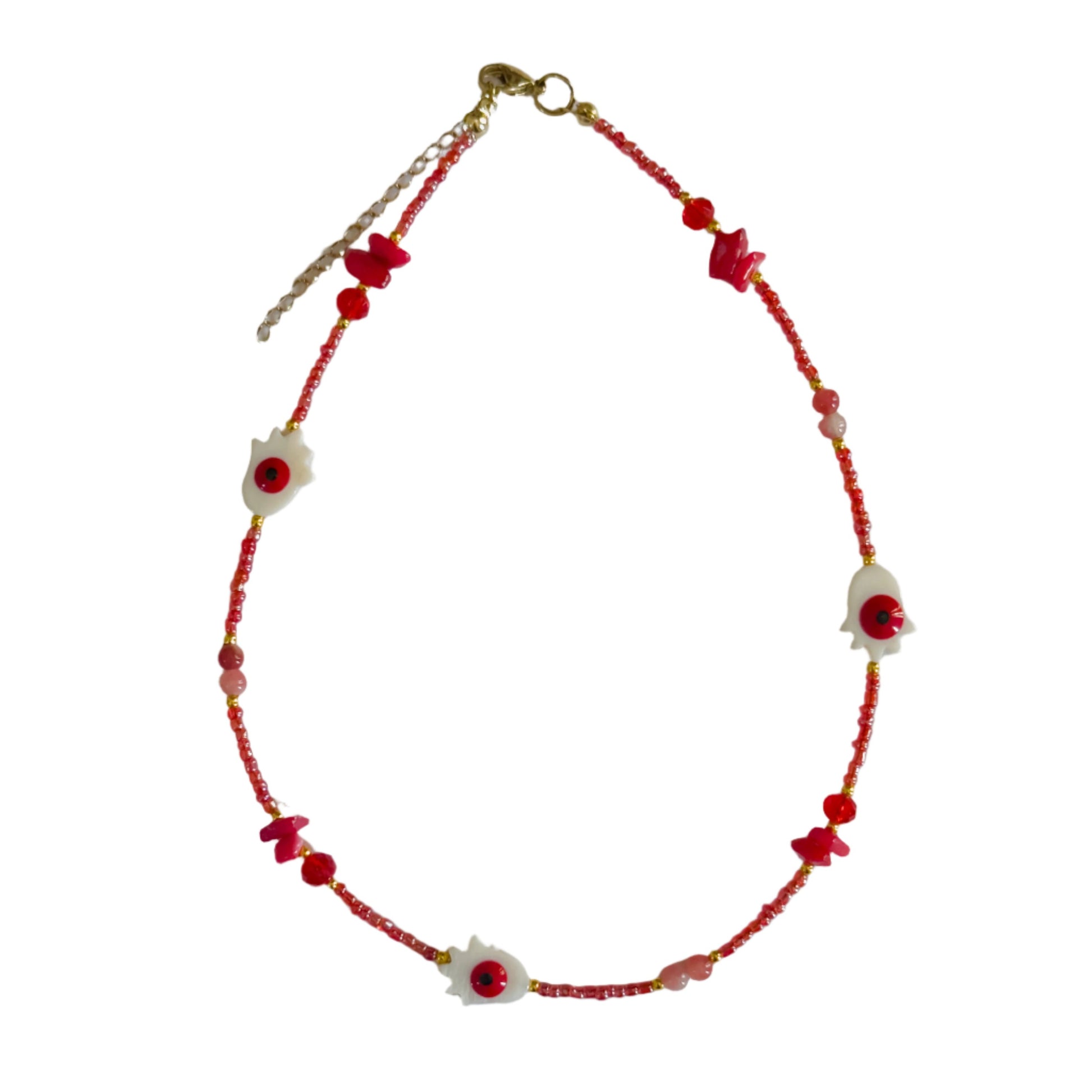 Elevate your style with our Red Random Beaded Choker. This stunning 35cm choker features a 5cm extension for the perfect fit. The red beaded design adds a bold and unique touch to any outfit.