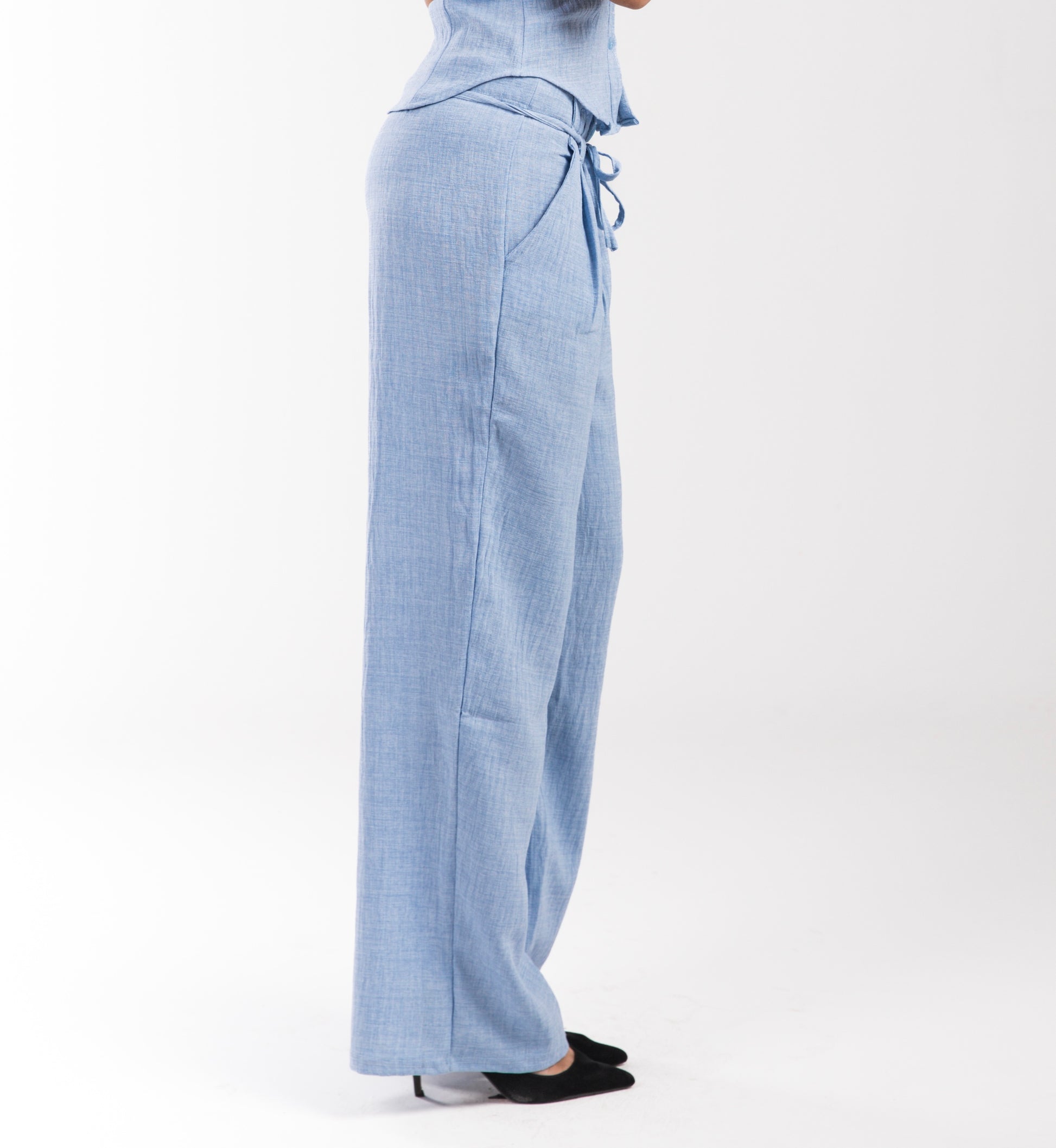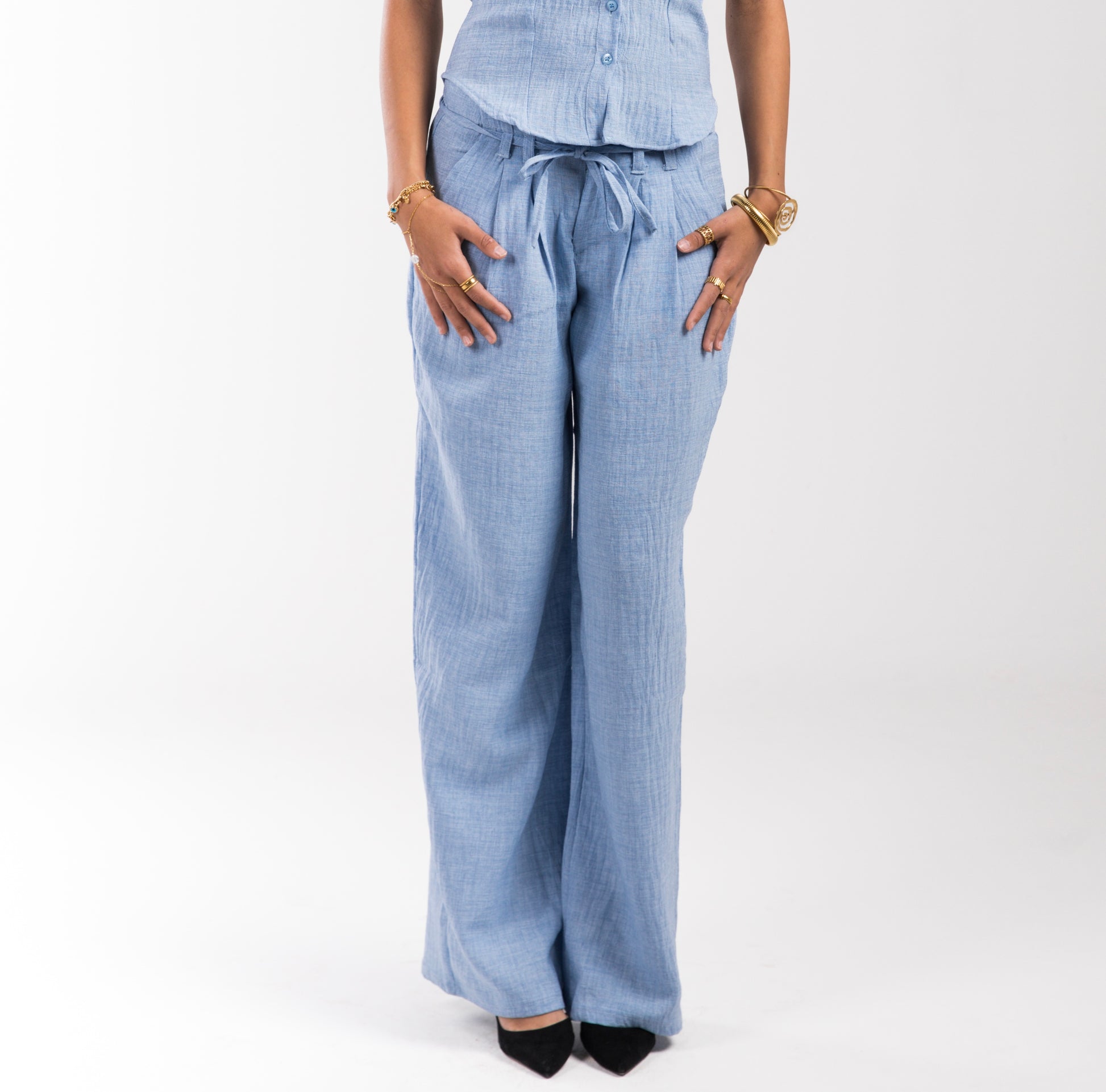 Our Sky Blue Linen Breeze Trousers are the perfect combination of style and comfort. Made with high quality linen, they offer a chic and lightweight option for any occasion. The optional belt strap adds a touch of versatility, making these Trousers a must-have addition to your wardrobe.