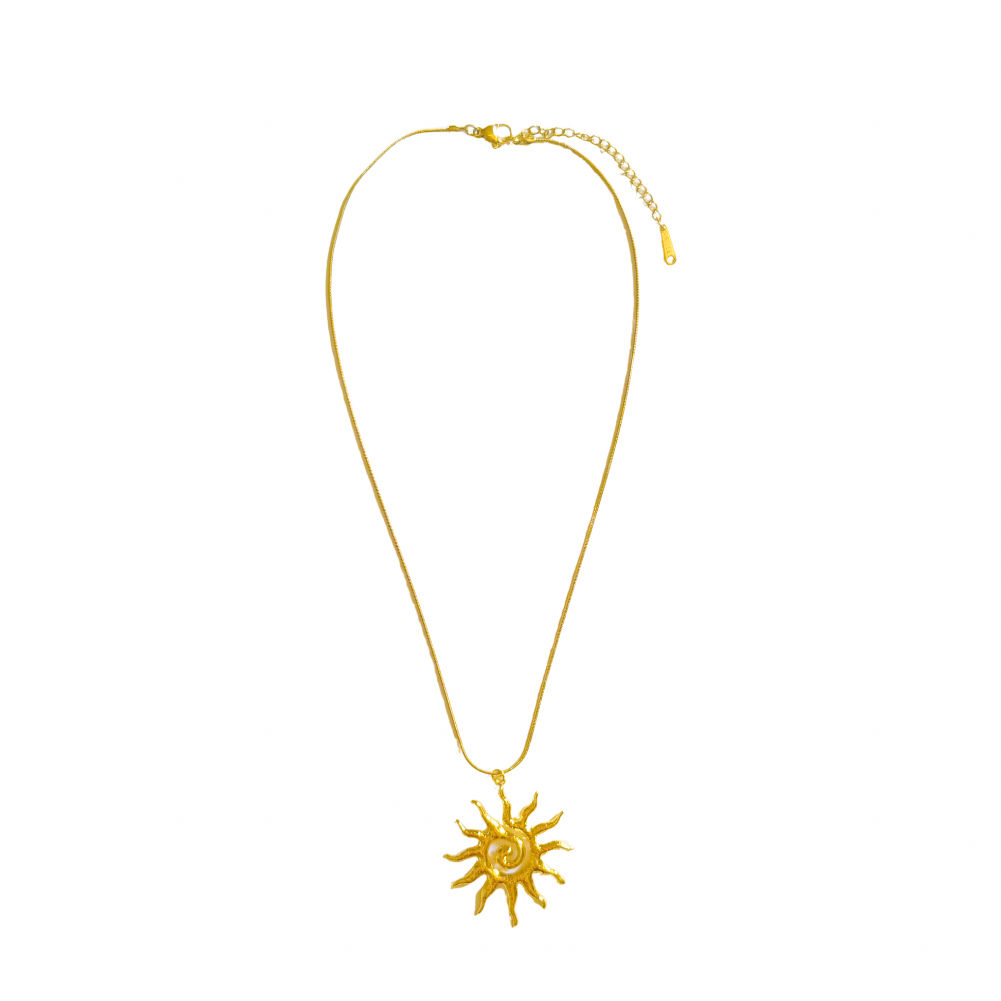 This sun necklace is made of durable stainless steel and boasts a radiant sun pendant. With a length of 40cm and an extension of 5cm, it can be adjusted to fit any neckline.