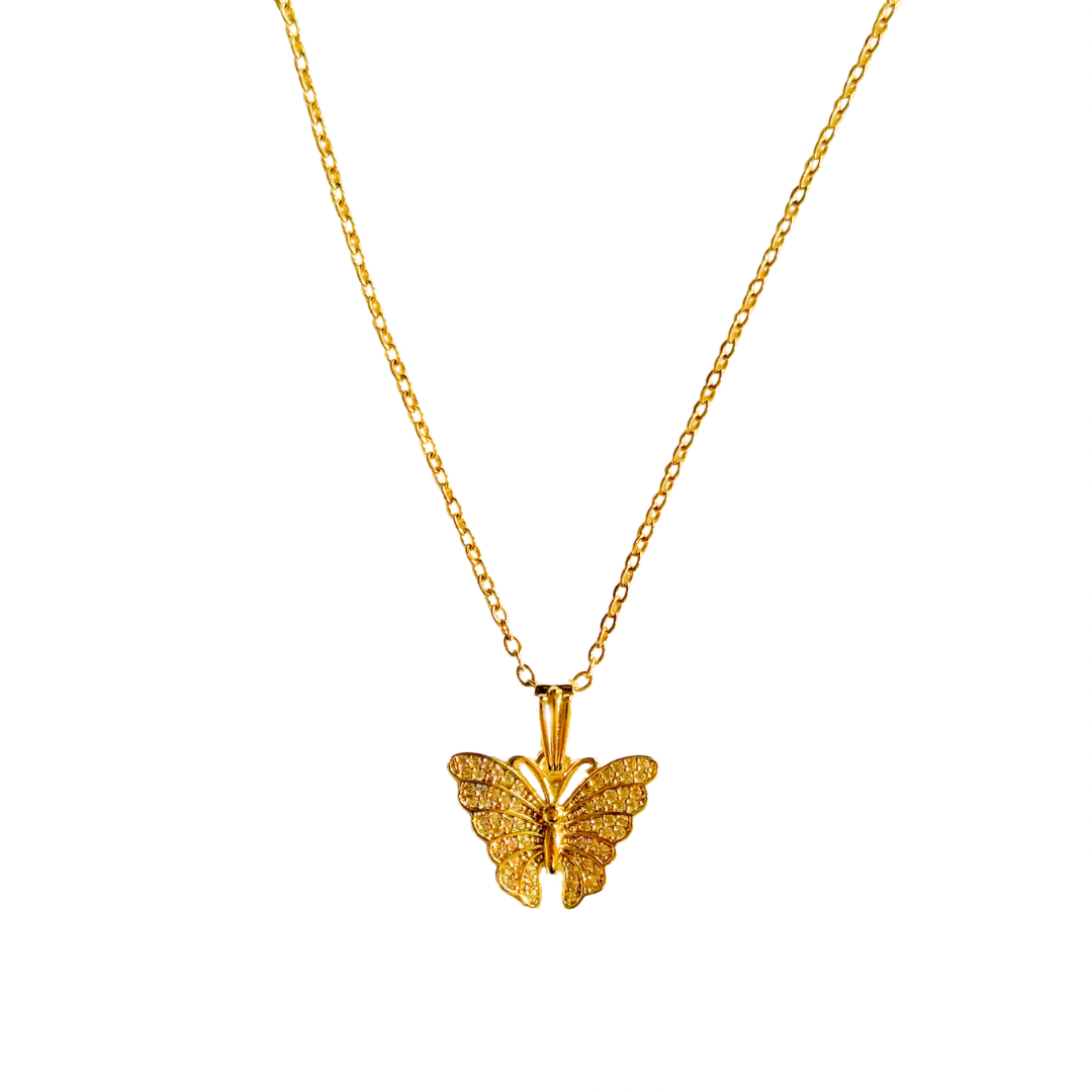 This stainless steel necklace features a stunning 18k gold plated butterfly pendant. With a length of 45cm and a 5cm extension, it is the perfect accessory to add a cute touch to any outfit.
